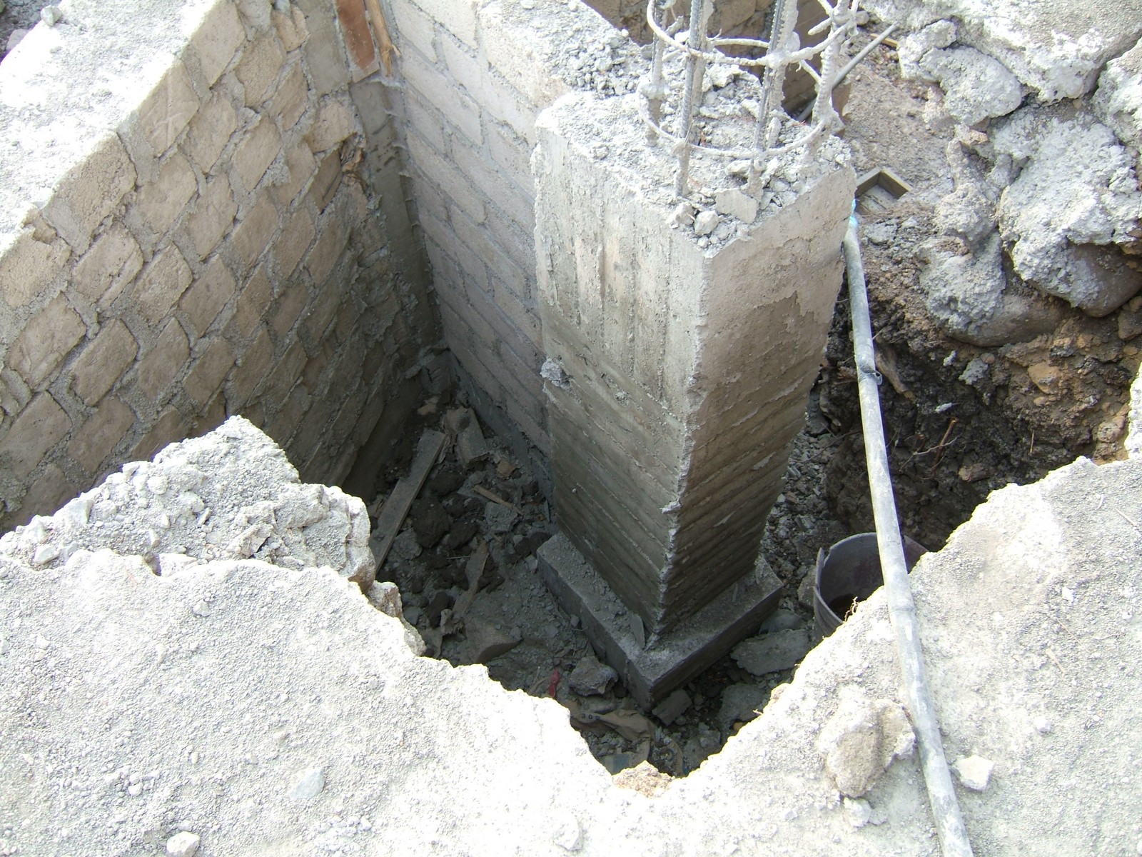 Una vista más general de los refuerzos de la cimentación.