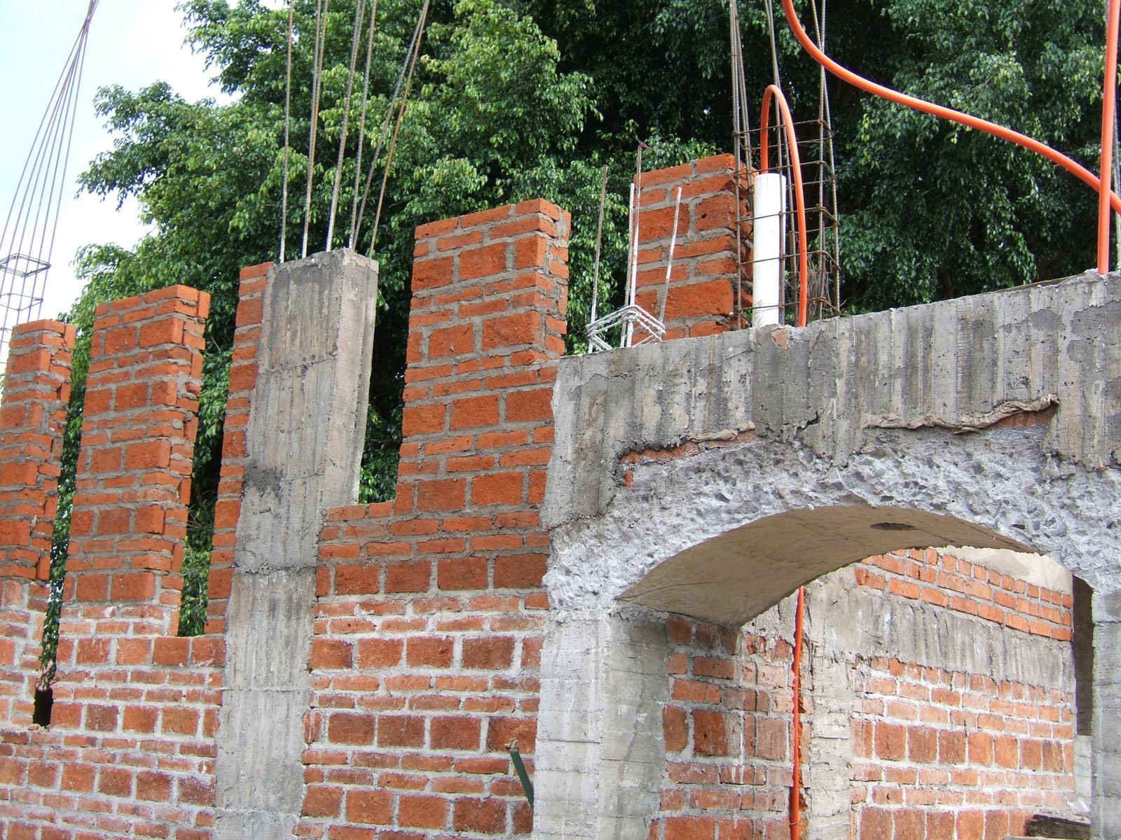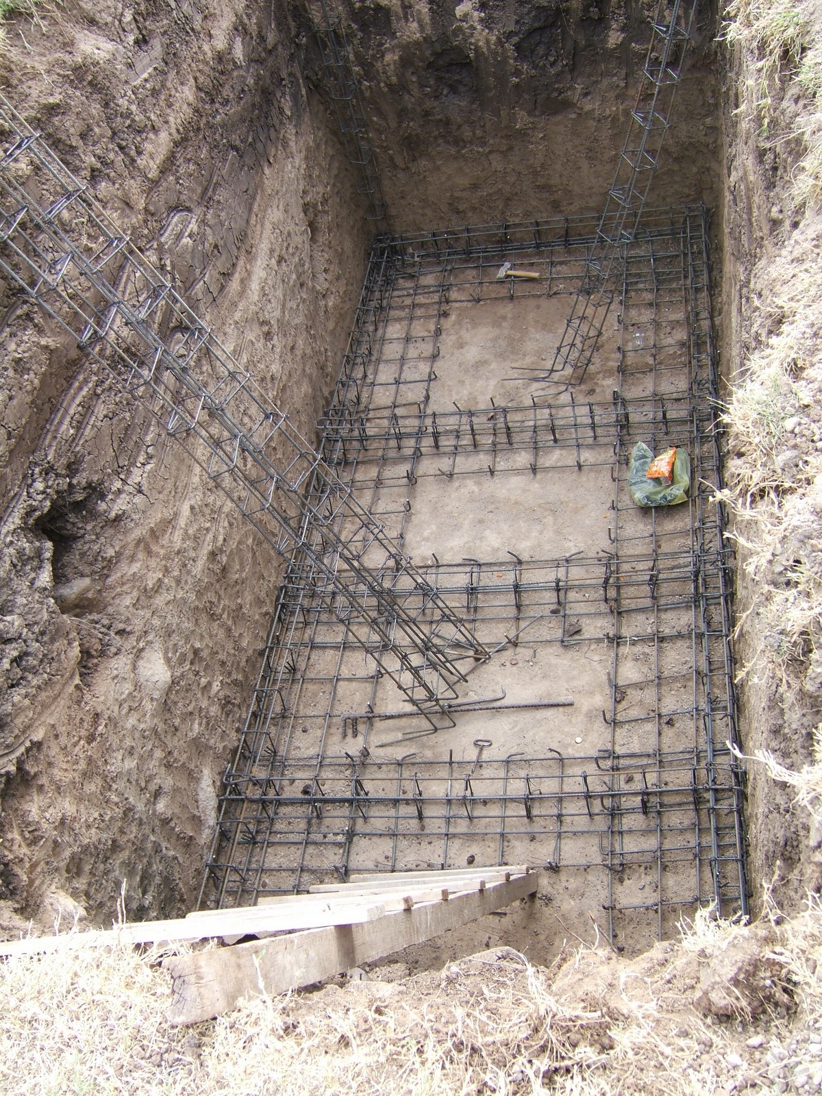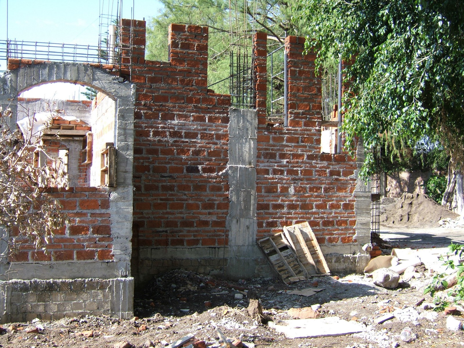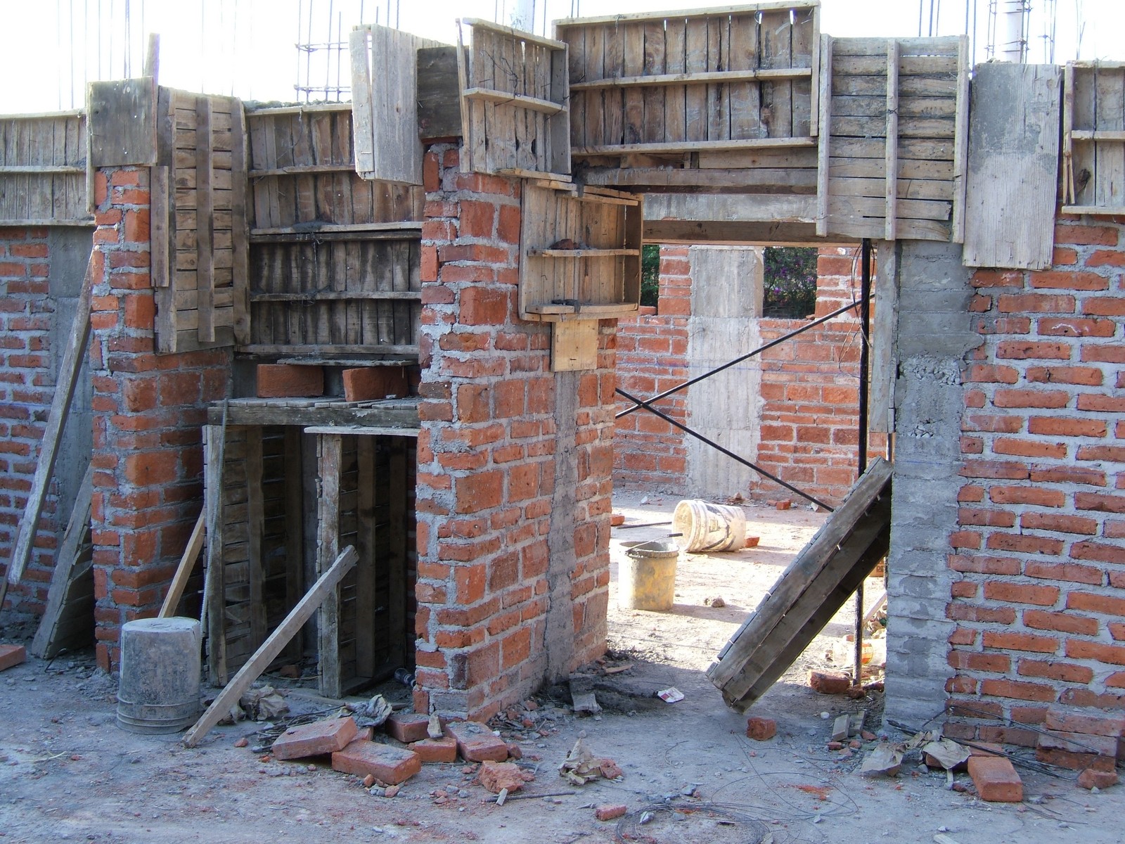 En este momento, el trabajo sobre las viguetas de acero está casi terminado, así es el cubrir del interior y el exterior de la casa con cemento. Se acaba de comenzar el trabajo sobre los techos de bóveda en la sala familiar.