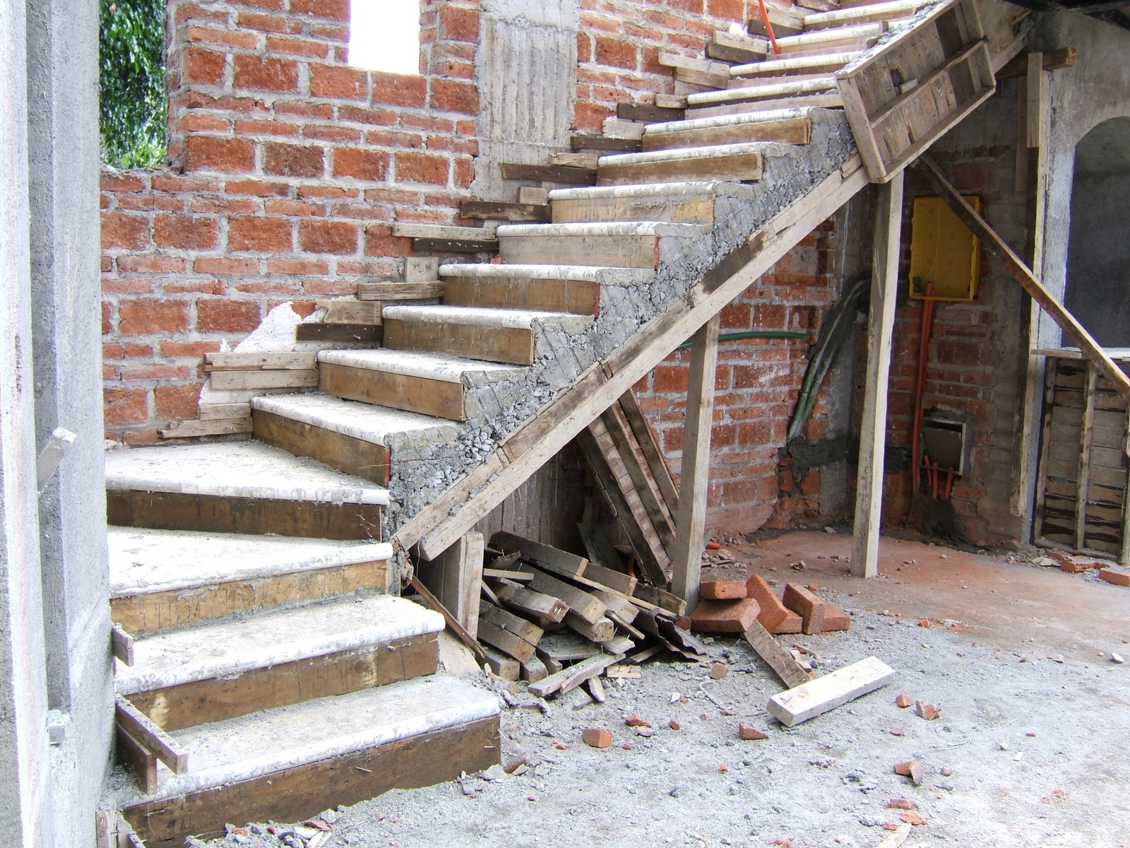Las escaleras; las instalaciones para el ingreso de electricidad están abajo.