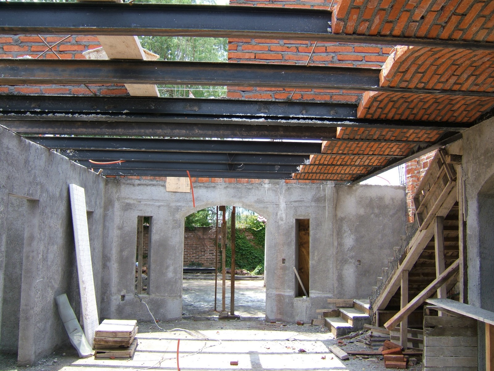 Por encima de las escaleras, mostrando la otra área que aún no se ha cubierto con enjarre.