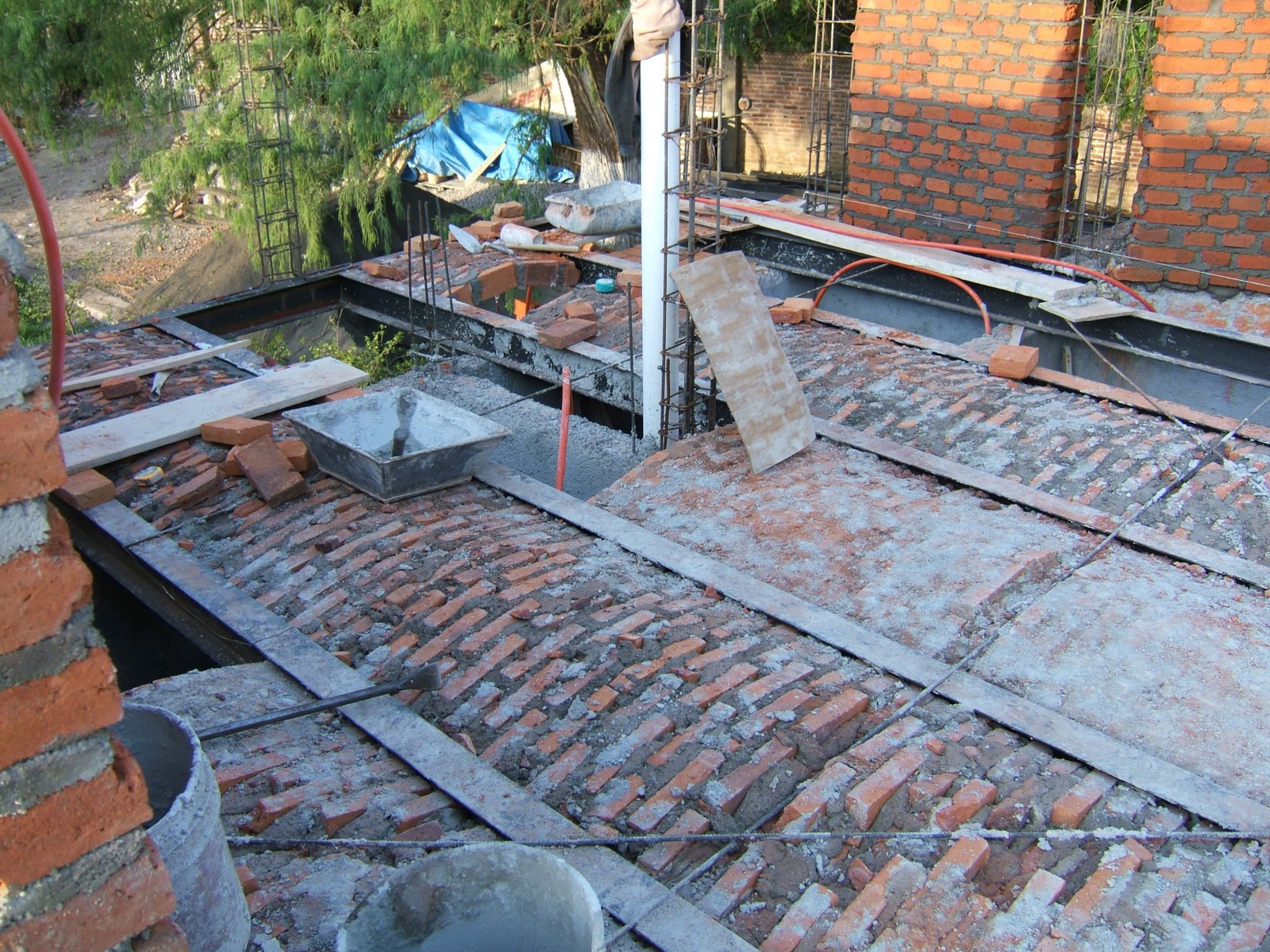 Un vista del estudio por encima de la terraza, que como la mayoría de la planta alta, ya se ha cubierto con concreto.