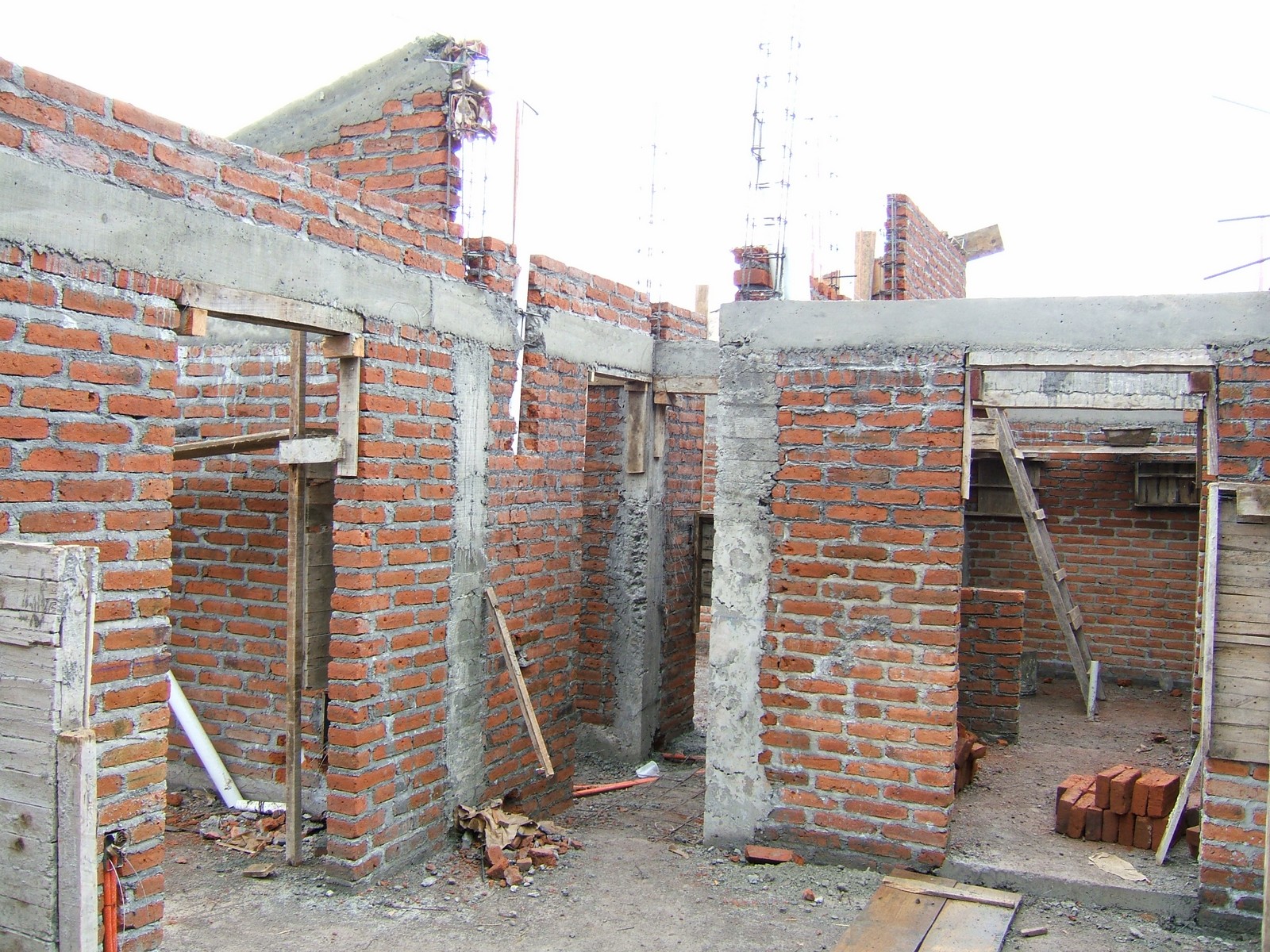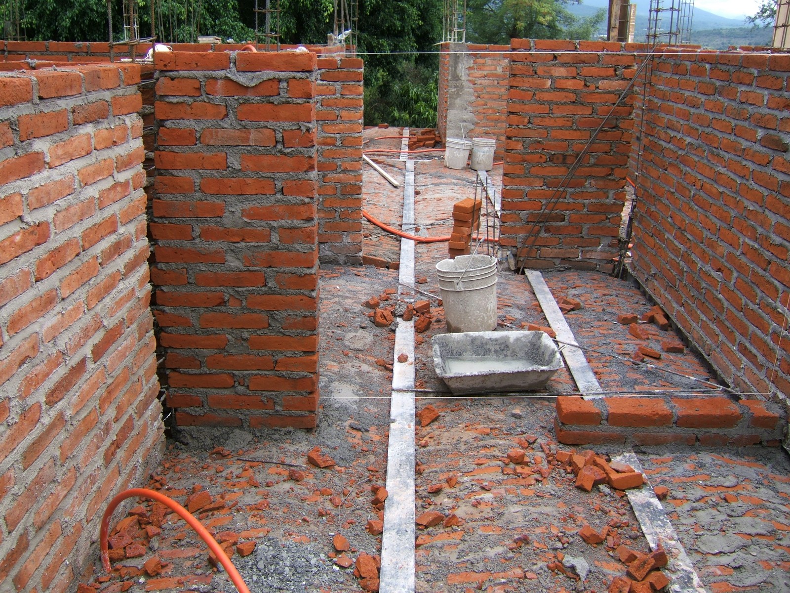 Una vista más mostrando paredes construidas a una altura de 2.1 metros, listas para soportar dalas.
