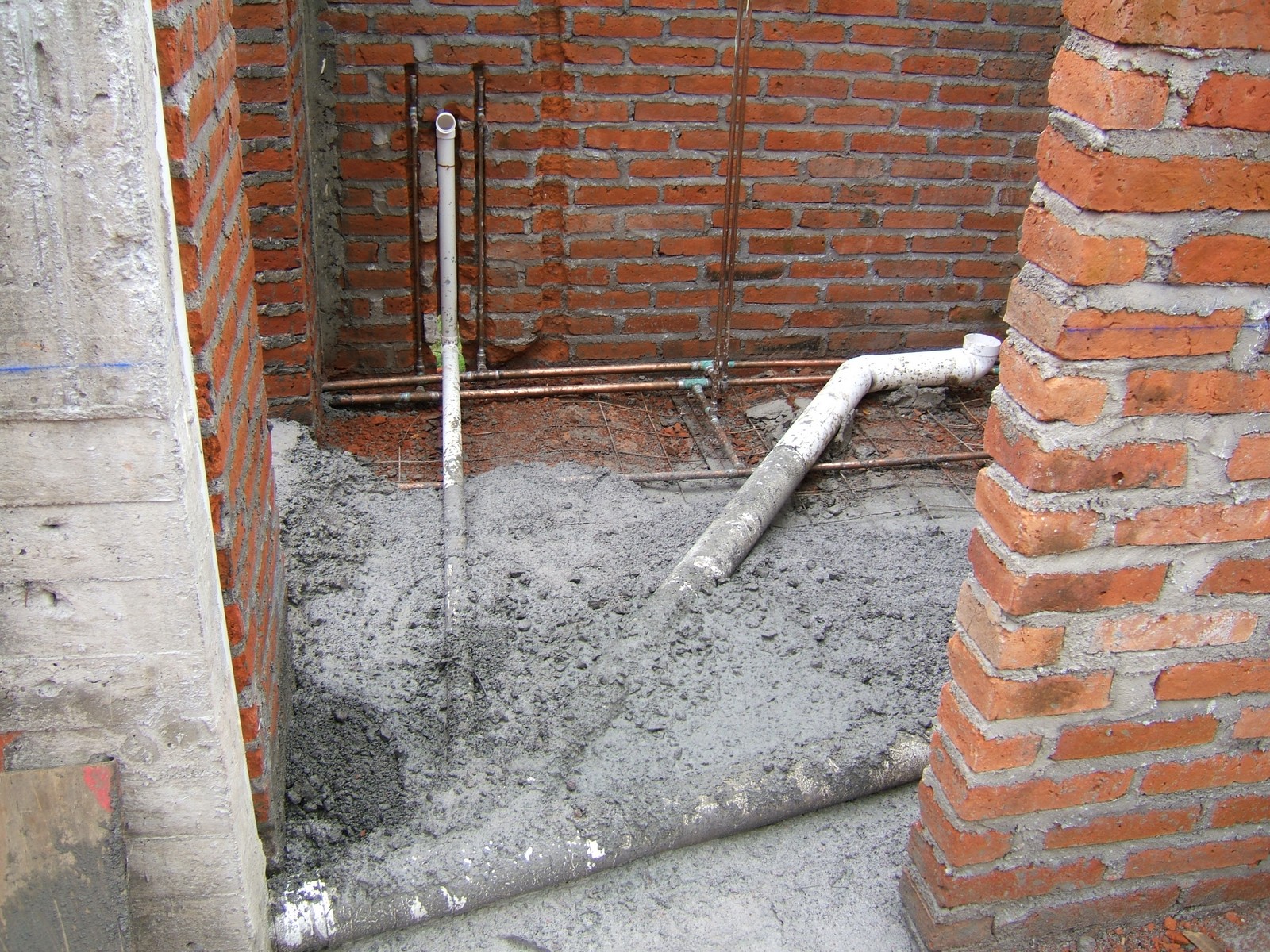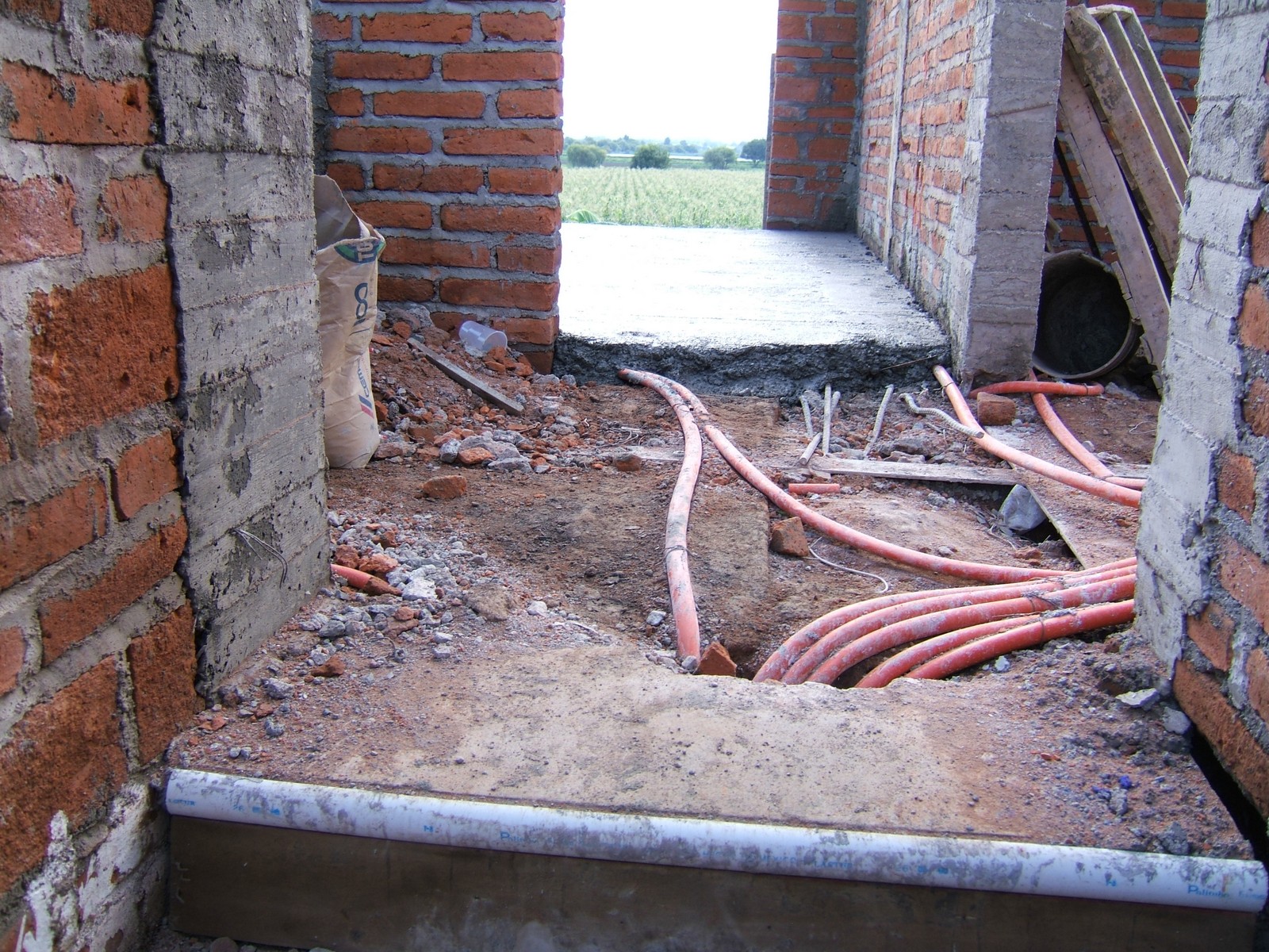 La plomería en recámara 3, que irá al baño de al lado. Muestra también un registro para aligerar el mantenimiento del cableado.