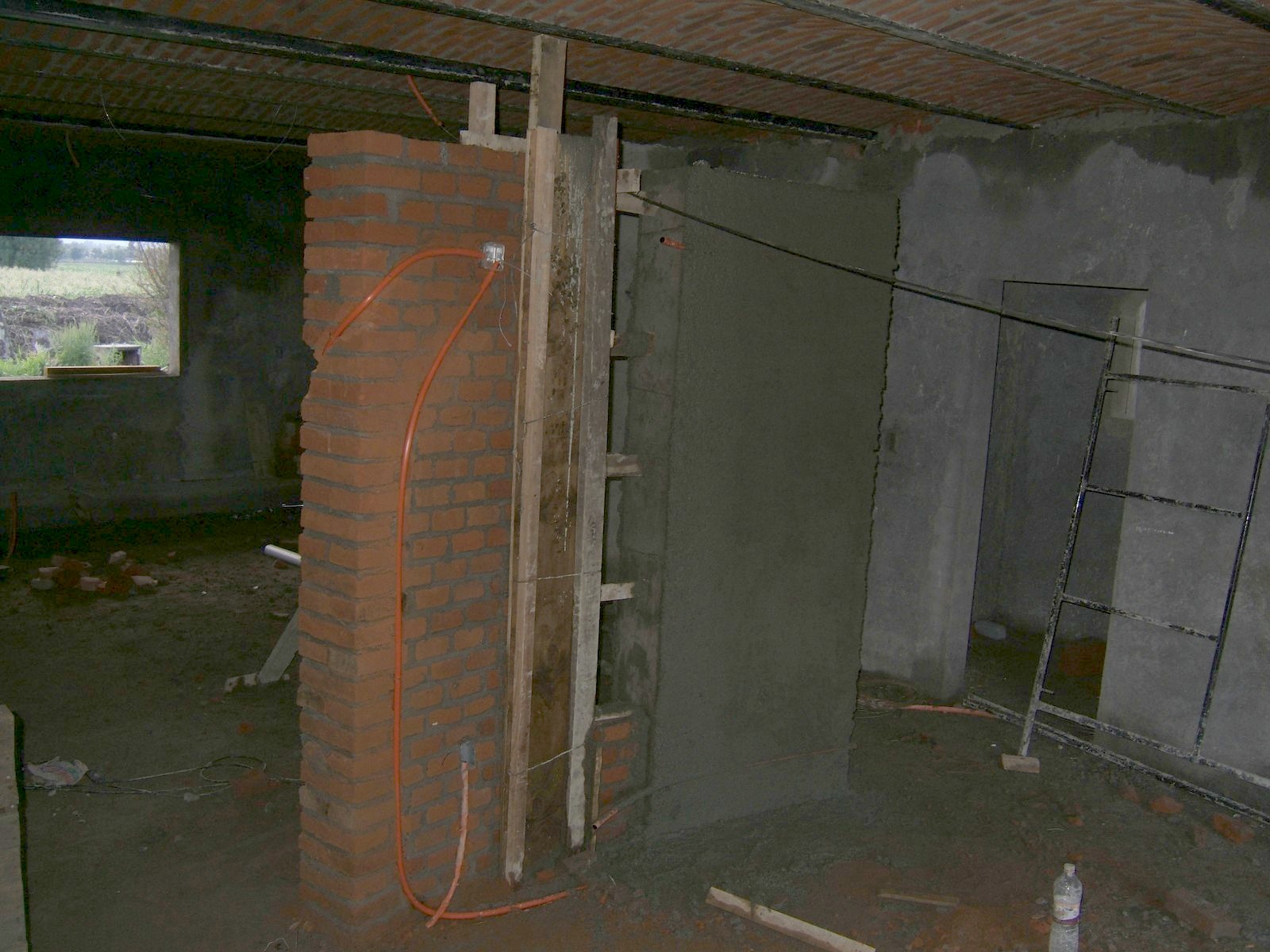 Viendo hacía el estudio, mostrando una pared que soportará el techo inclinado.