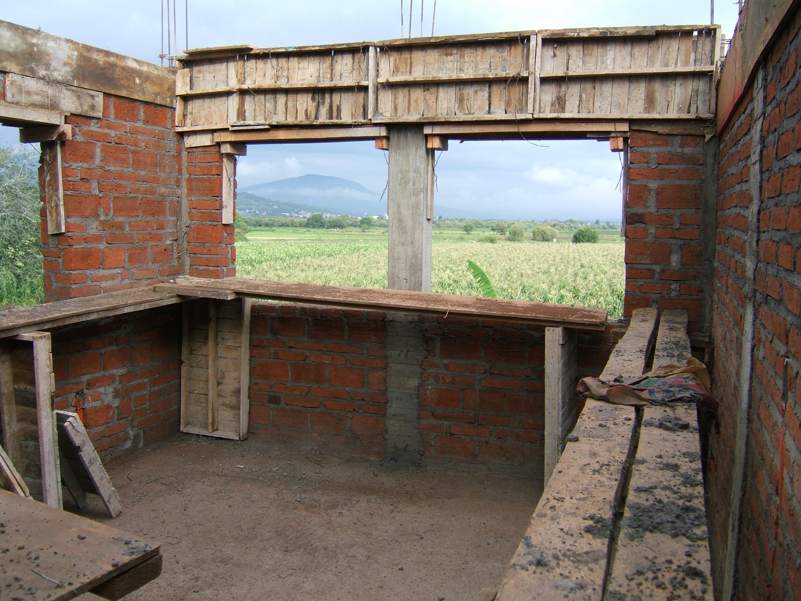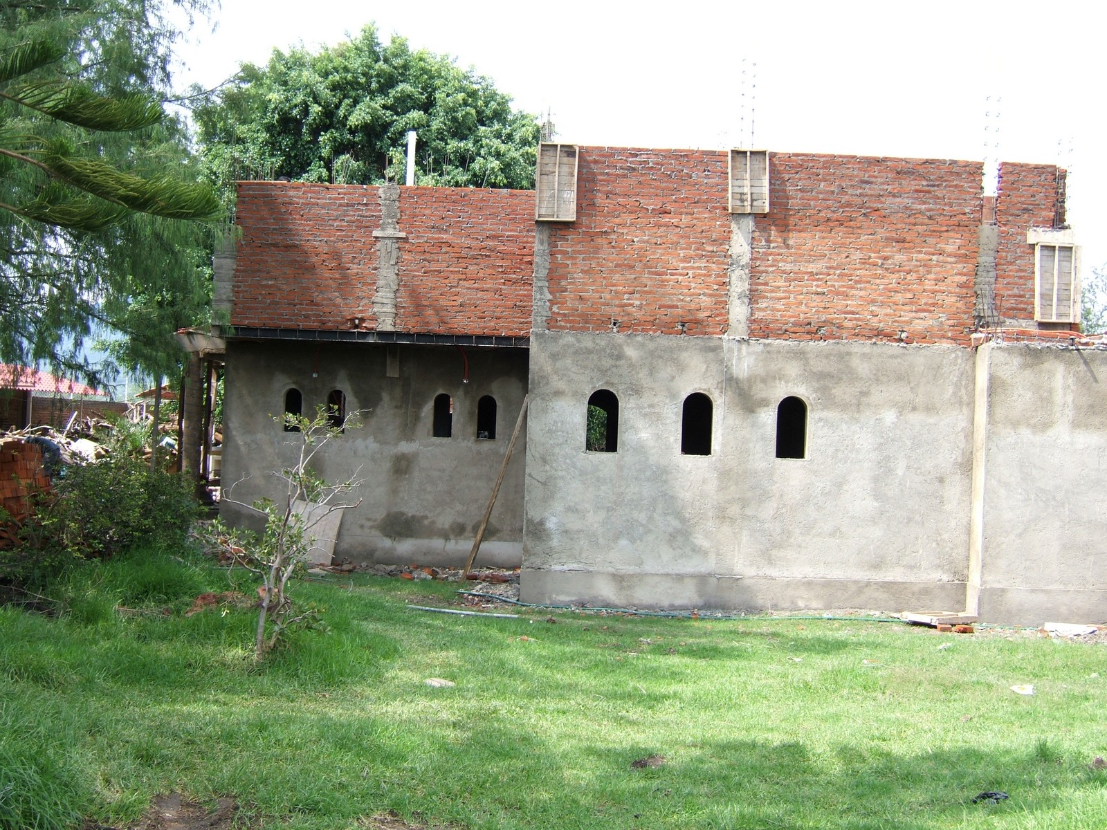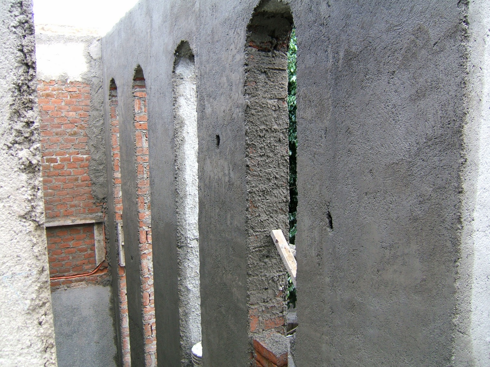 Recámara 2, mostrando las ventanas en forma de arco que se están construyendo.