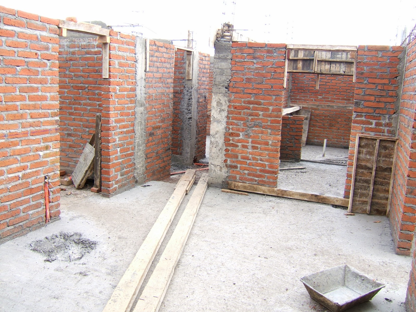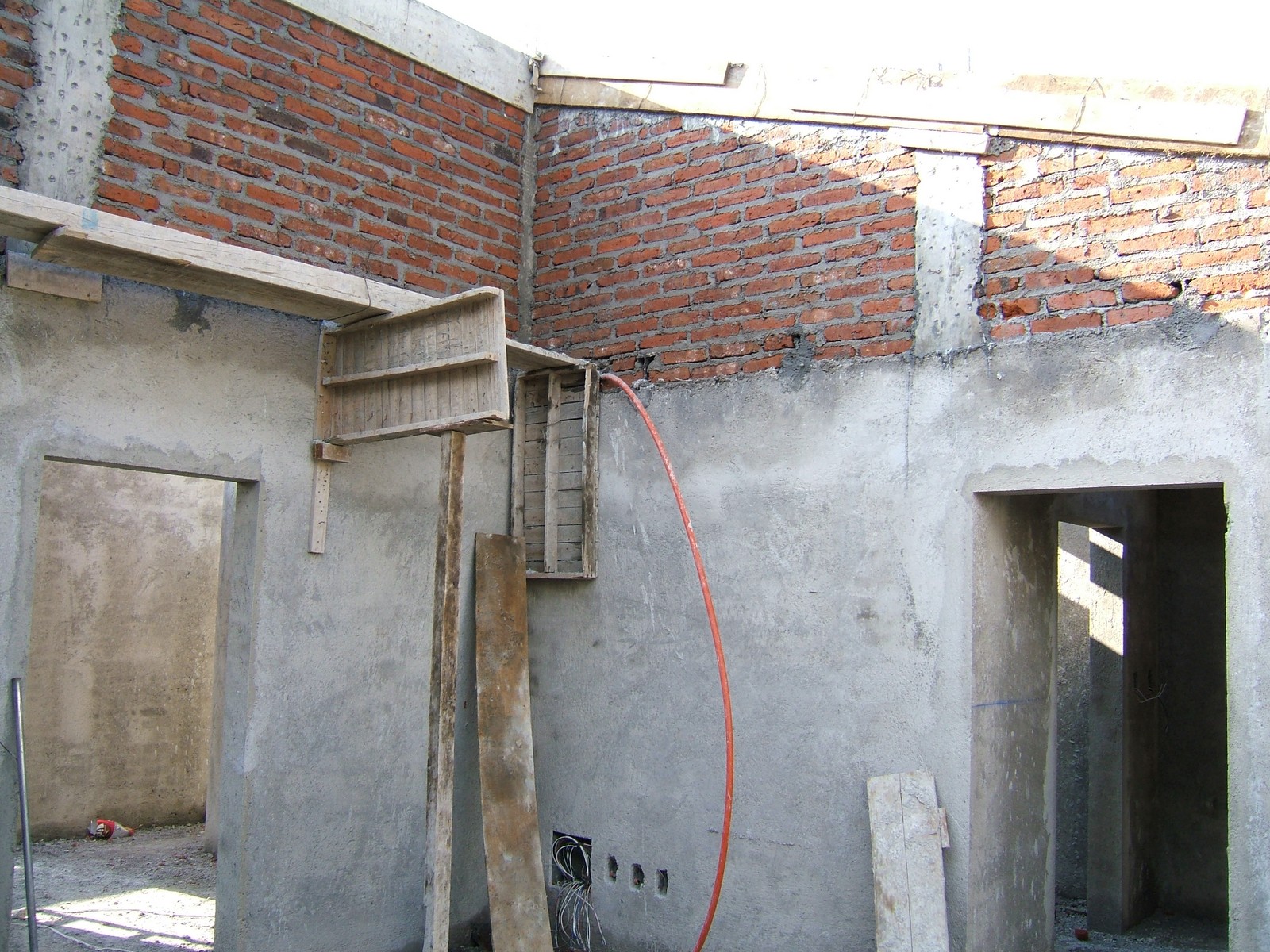 Una vista general de la planta alta, mostrando que la mayoría de las paredes ya están terminadas a una altura de 2.1 metros.