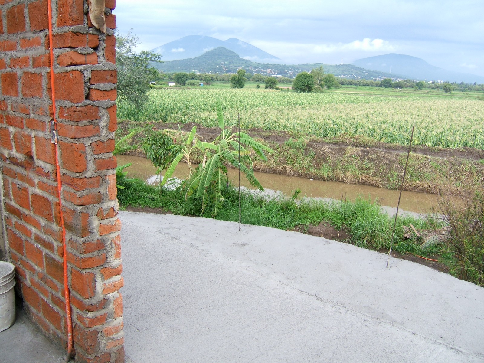 El pozo pluvial y la fosa séptica como se vé de la planta alta.