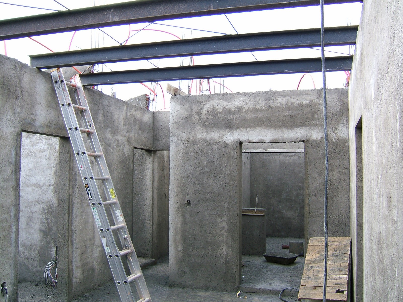 La sala de la planta alta, mostrando que se ha empezado la obra sobre las viguetas de acero.