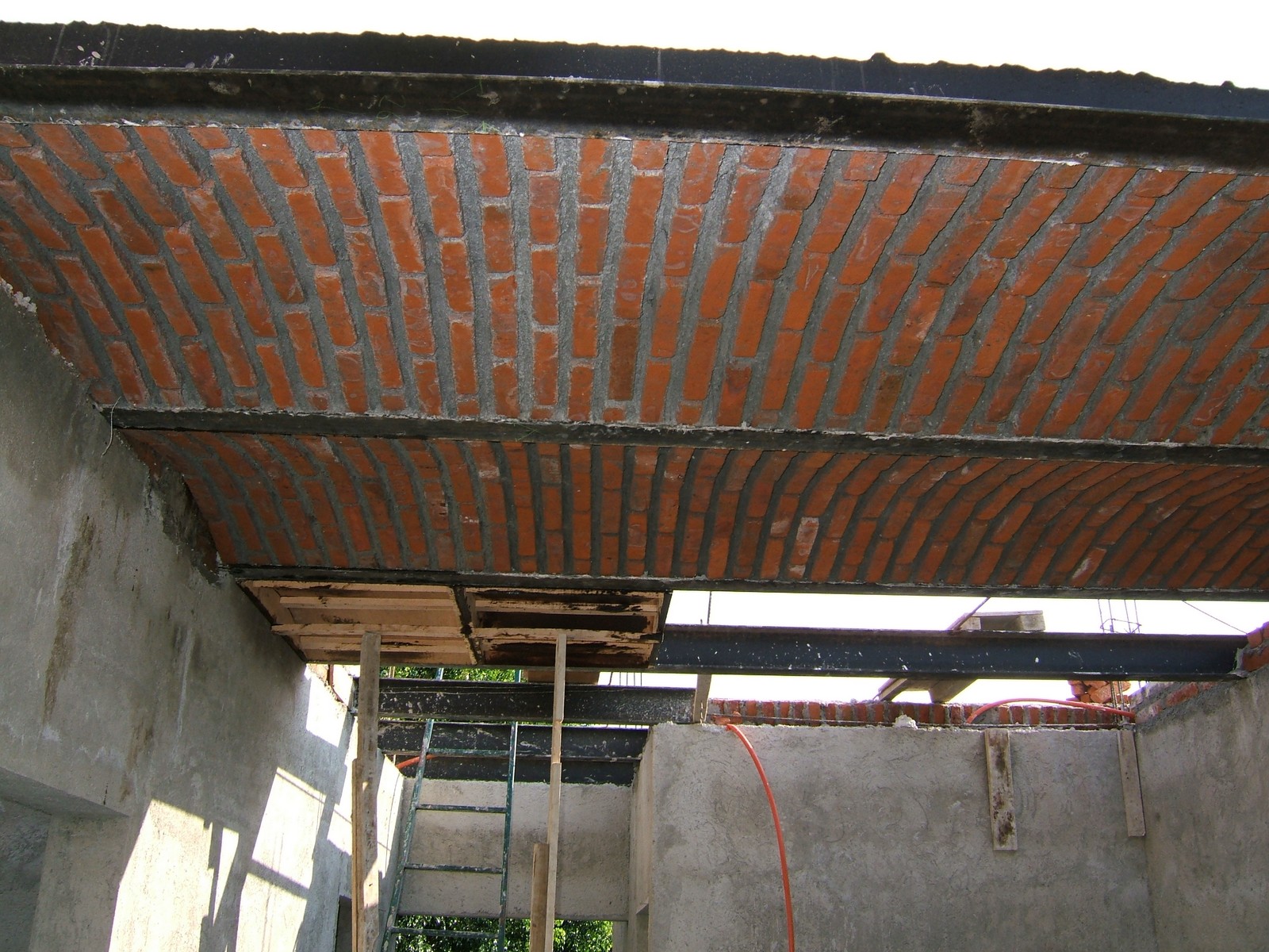 Se está construyendo el techo de bóveda en la sala en la planta alta.