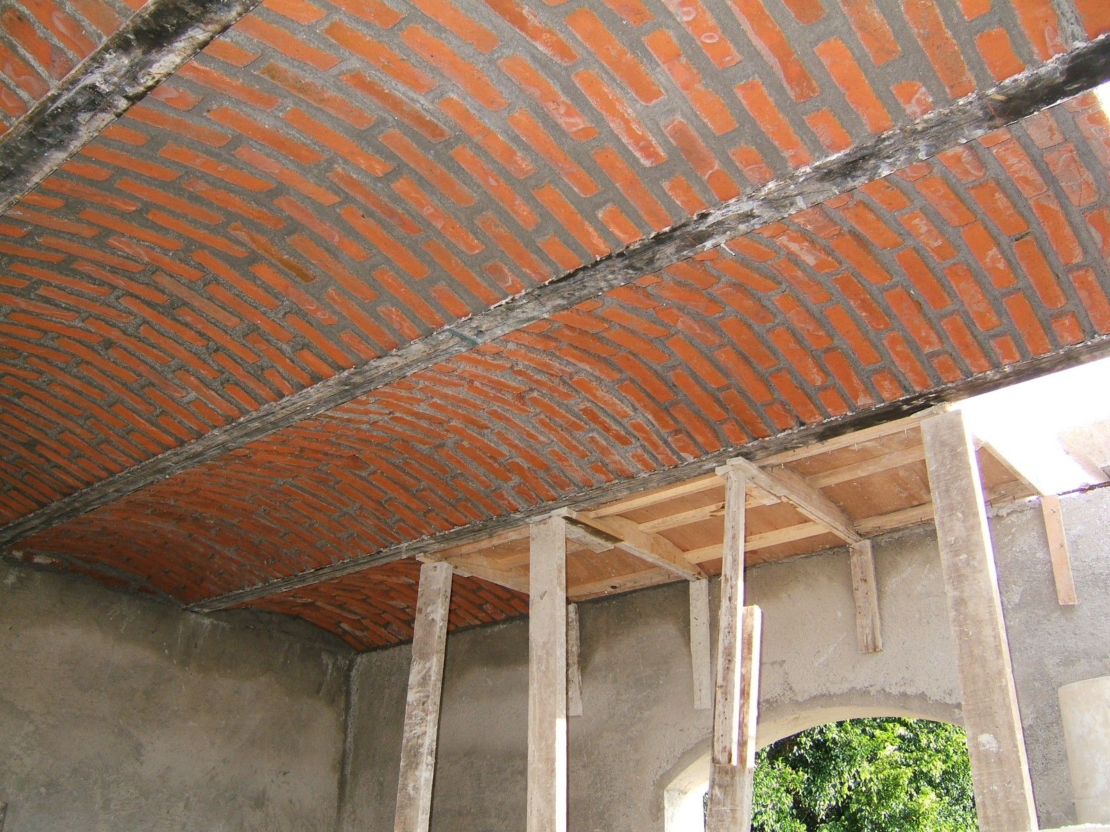 Una vista similar mostrando más de la obra de boveda ahora terminada.