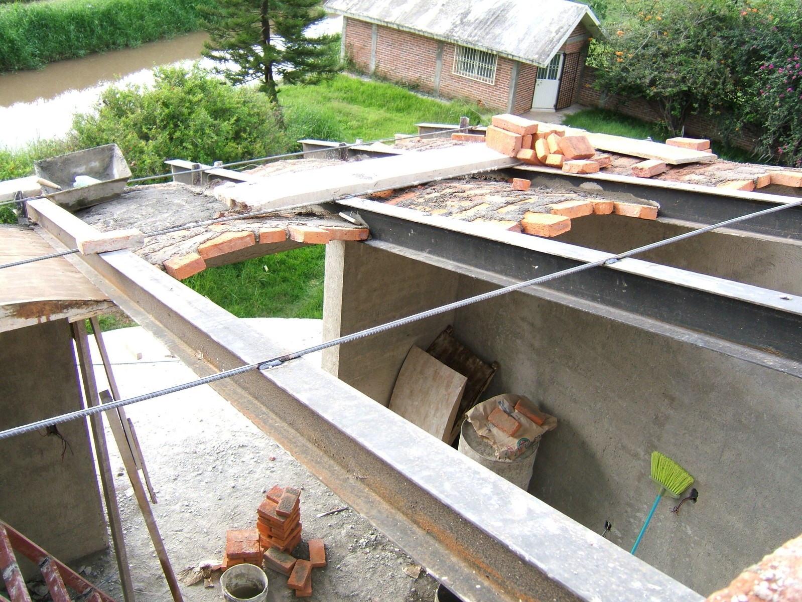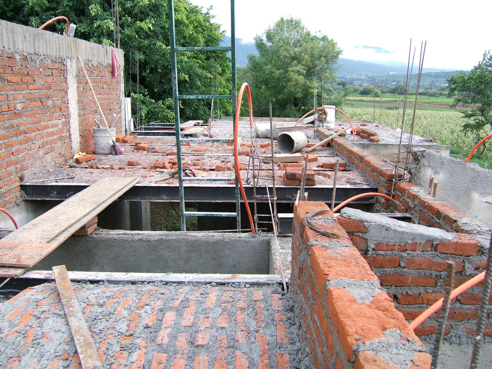 El lado sur de la casa; como se puede ver, las viguetas sobresalen la terraza y tendrán bóveda para resguardar más.