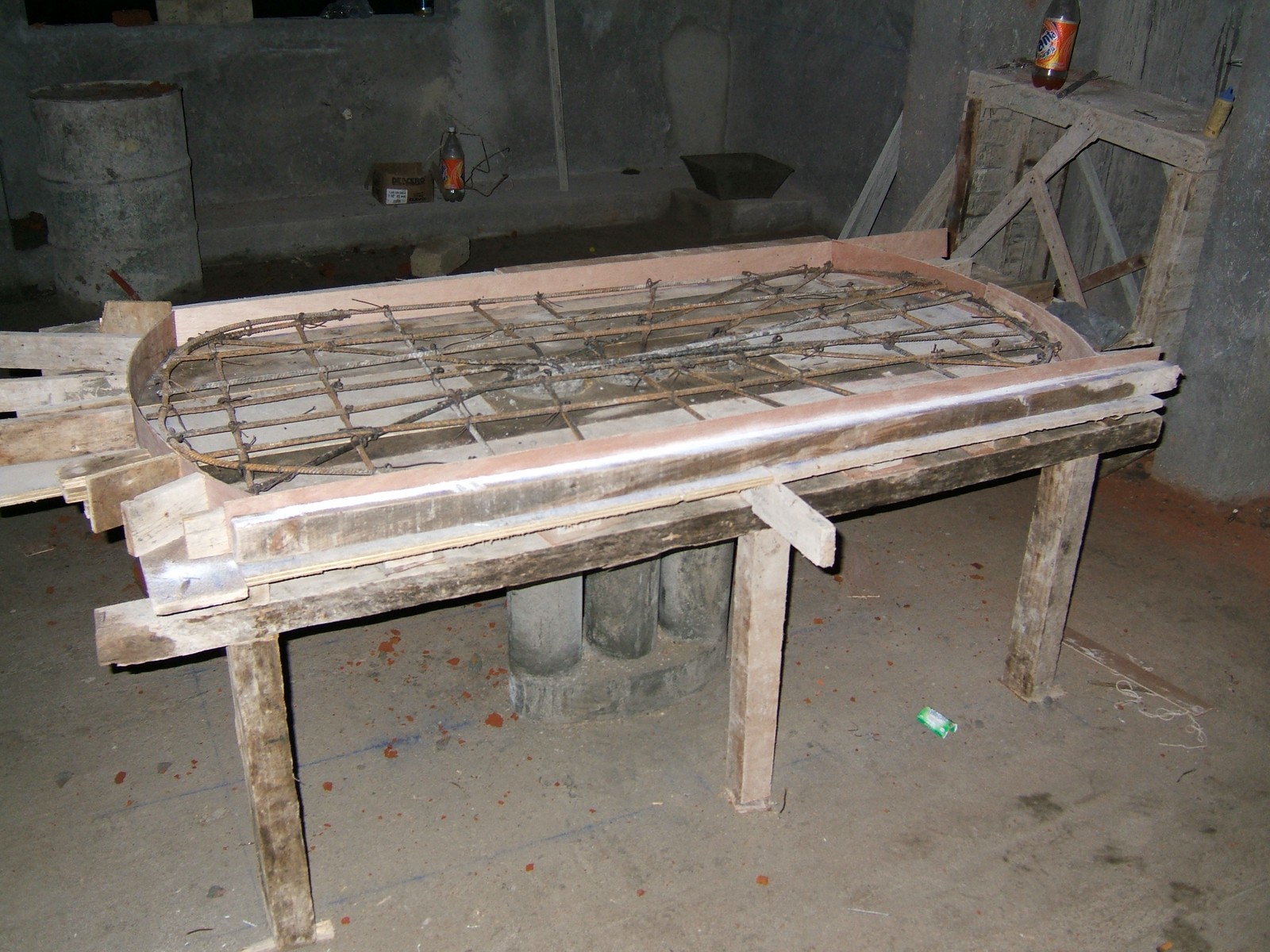 La mesa de comedor que se está construyendo; muestra los refuerzos para la superficie.