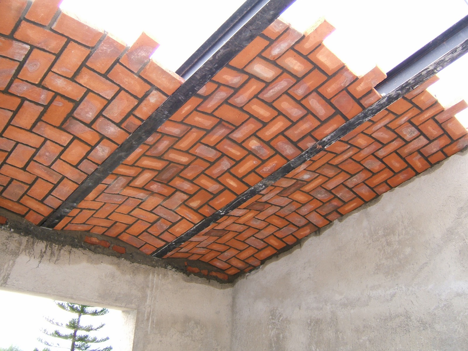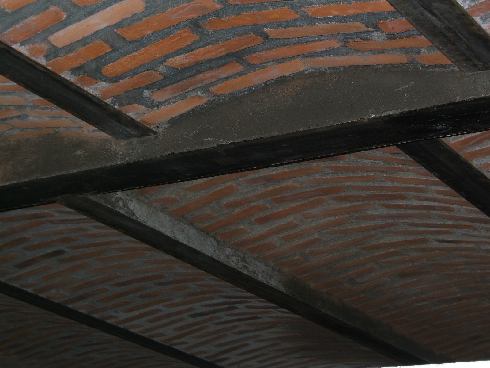 Una vista desde la puerta de entrada. Los tabiques a la derecha son especiales para los techos de bóveda; otros son tabiques normales.