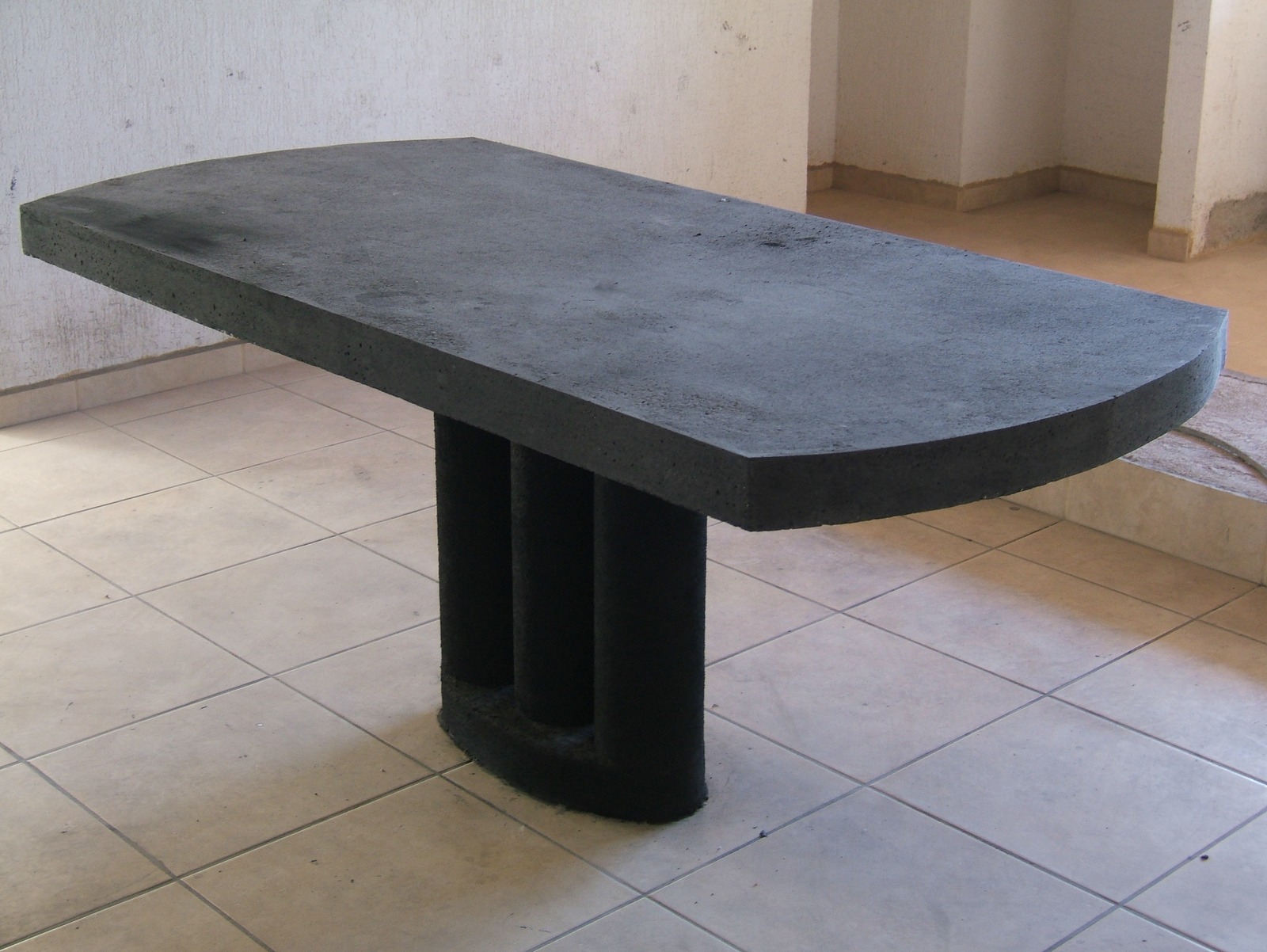 El exterior al lado de las escaleras también está terminado en concreto rústico. Se aplicará esto a la izquierda de la entrada para acabar el elemento estructural.