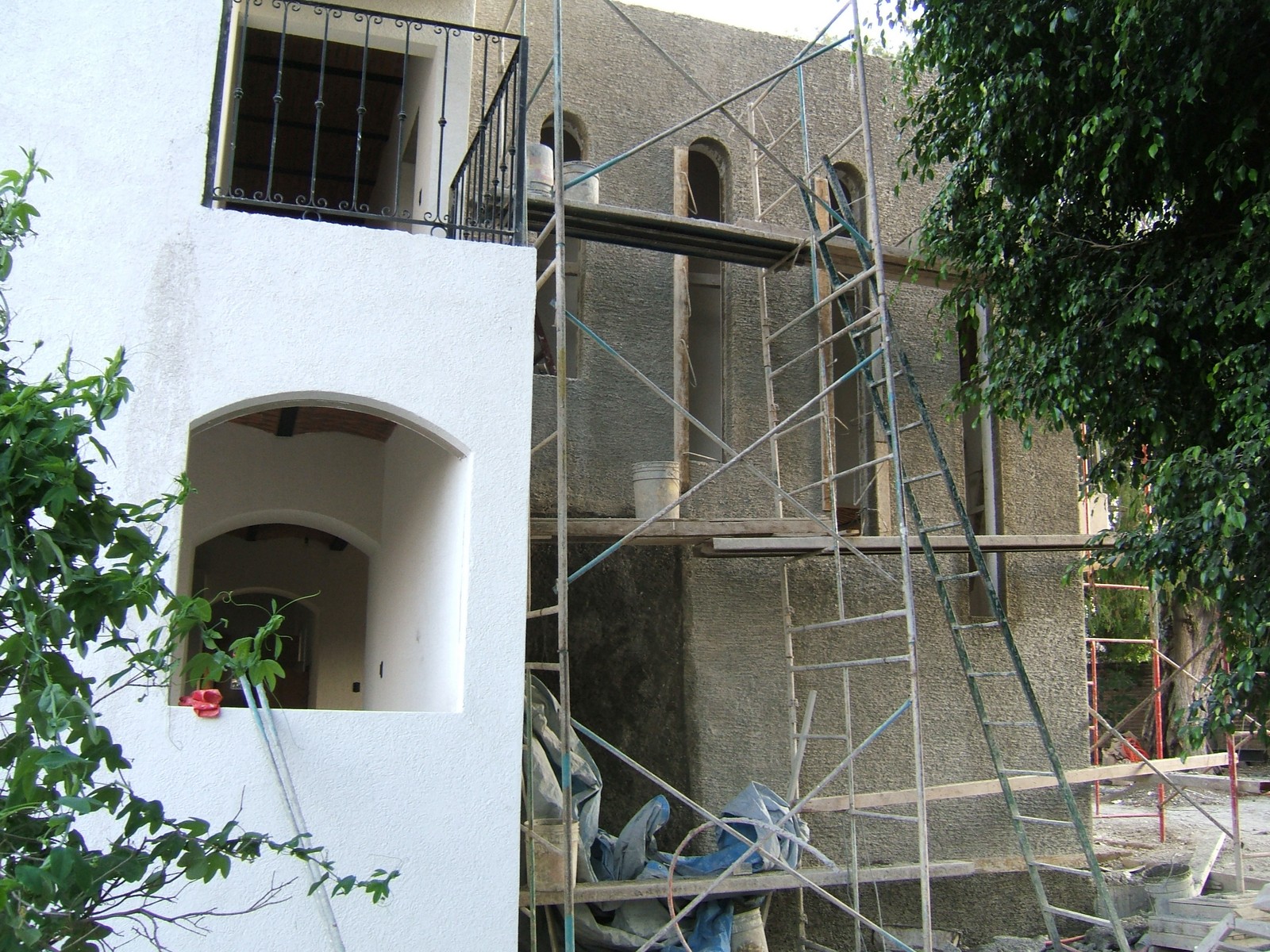 El balcón de la recámara principal mostrando que el bastidor está colocado. Todas las rejas ahora se han pintado de negro con énfasis dorados, y tendrán barandas pintadas de dorado.