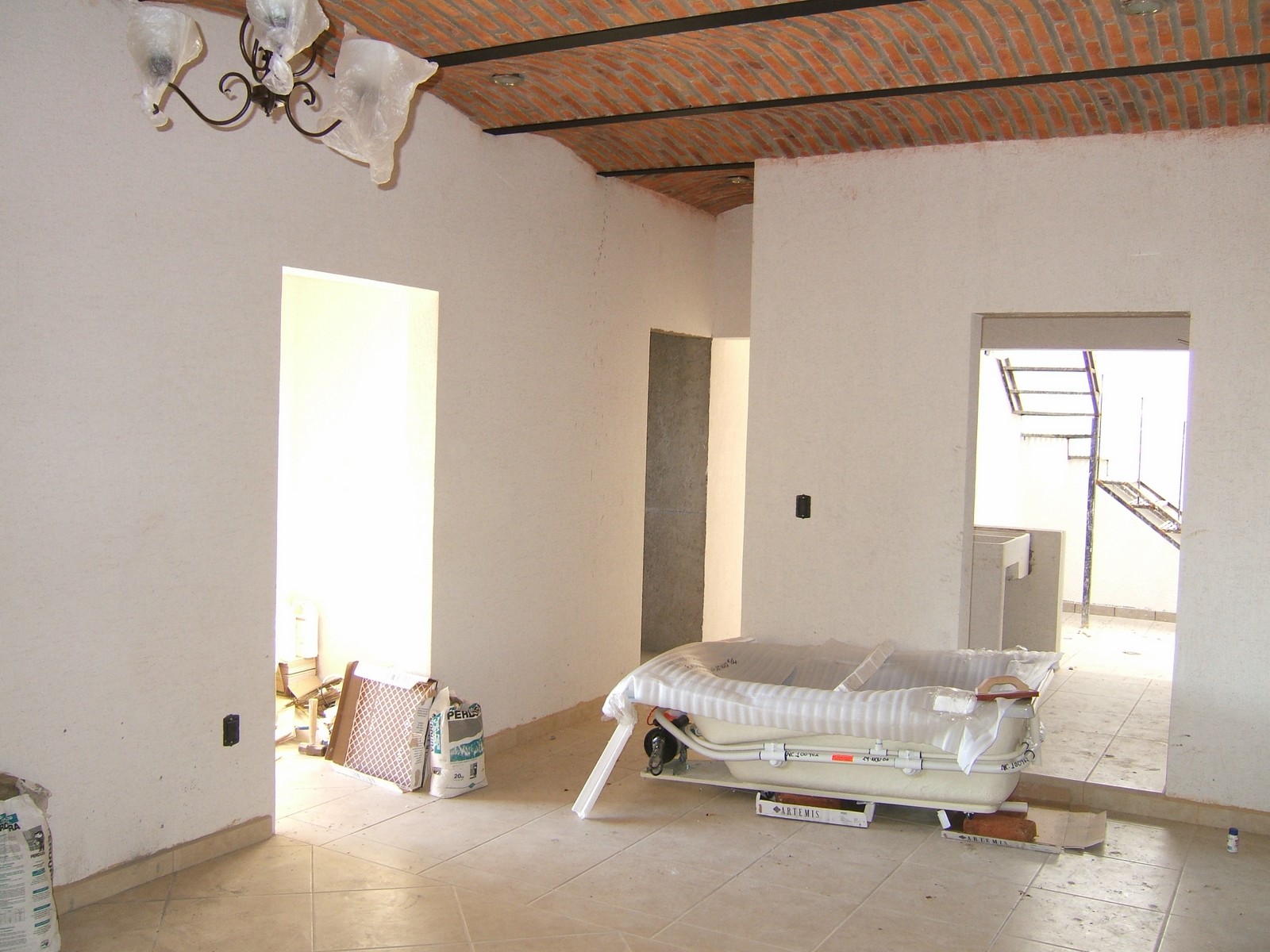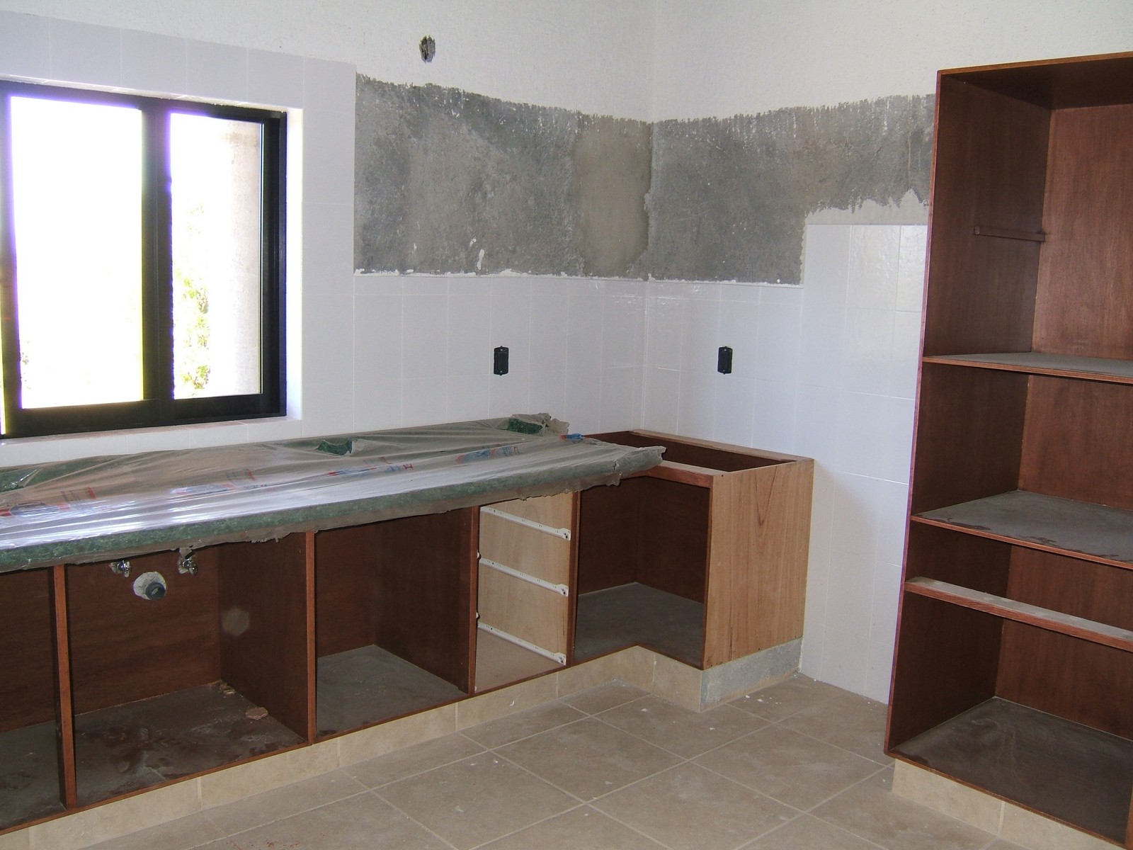 Ahora se ha colocado el fregadero, pero los aparatos y los muebles que compramos en Guadalajara no llegarán hasta la próxima semana.