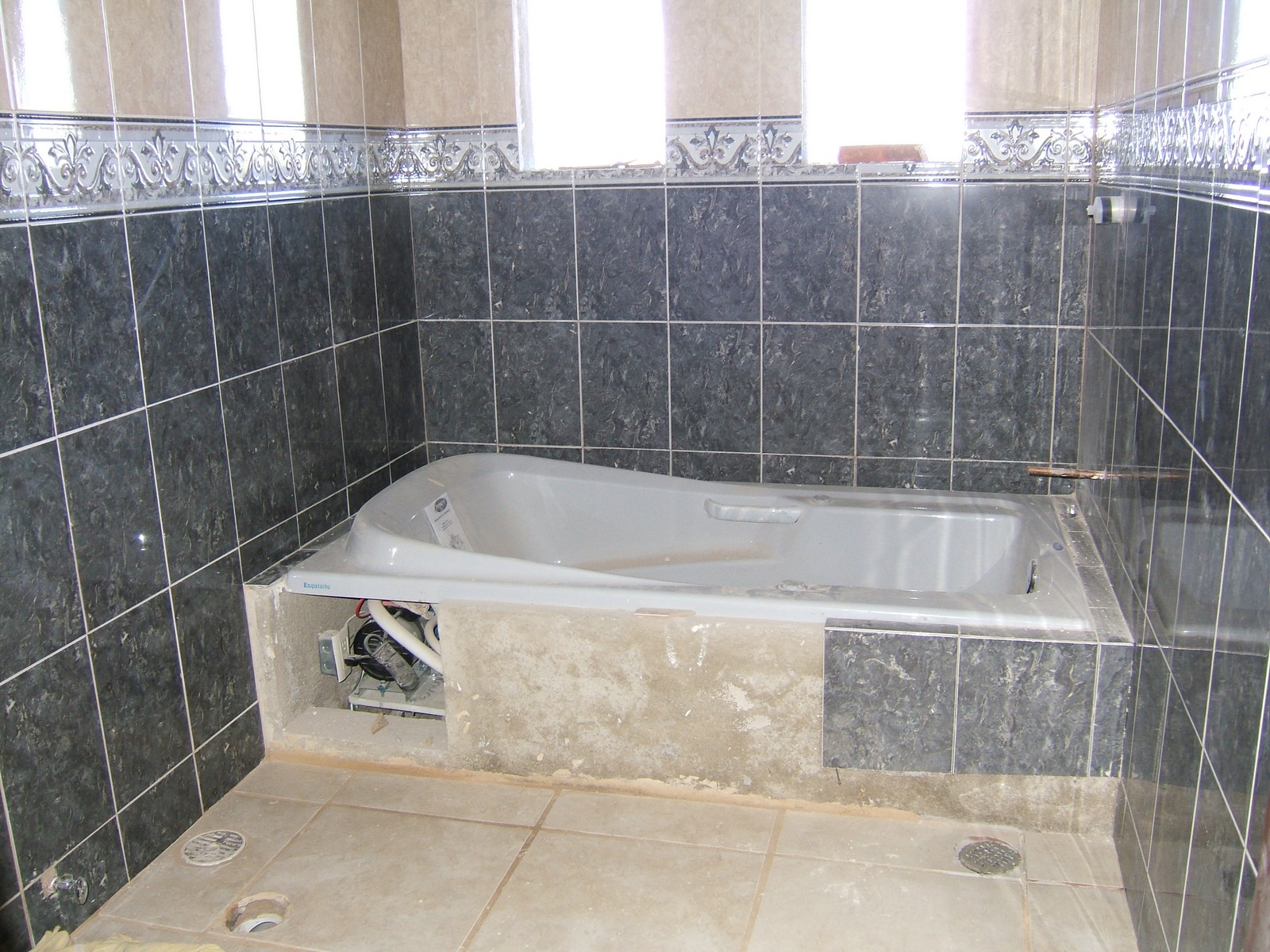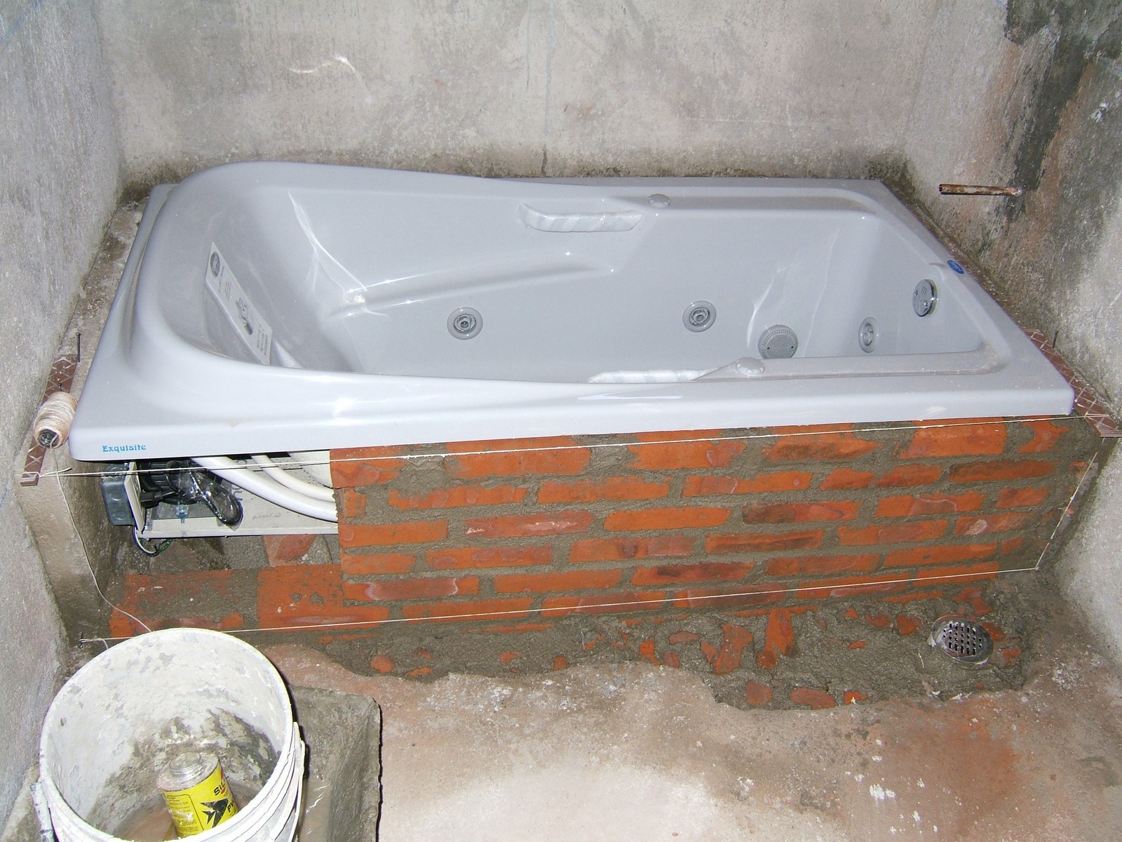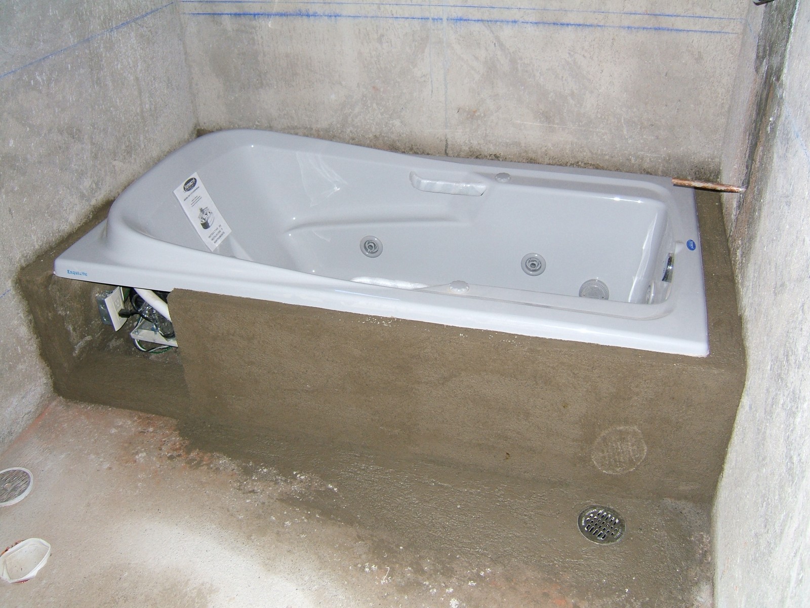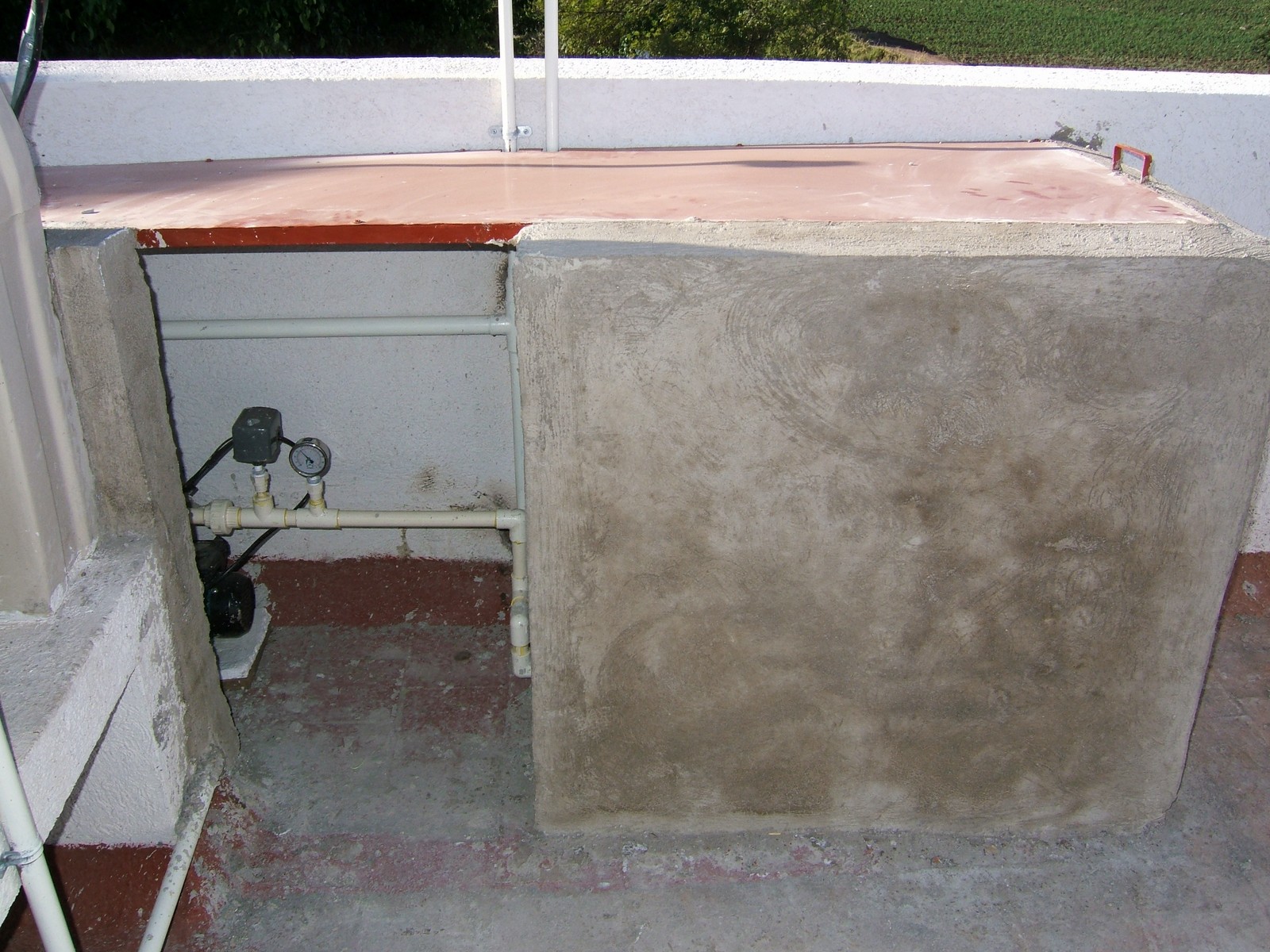 Ahora se ha terminado la base para la tina; sólo necesita azulejar. Se ha conectado el motor a un nuevo contacto.
