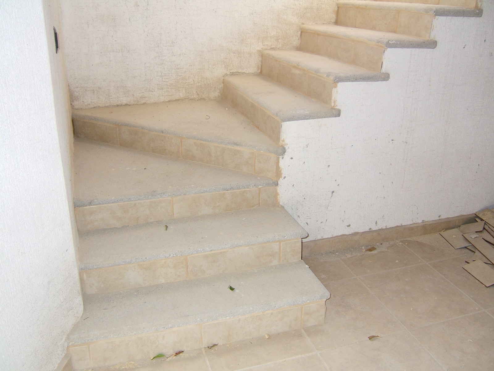El trabajo de albañilería acabó la semana pasada, dejando solo pocos detalles; por ejemplo azulejar las contrahuellas de las escaleras. También habrá que limpiar, arreglar y pintar por último los acabados sobre las paredes; se harán estos al fin.