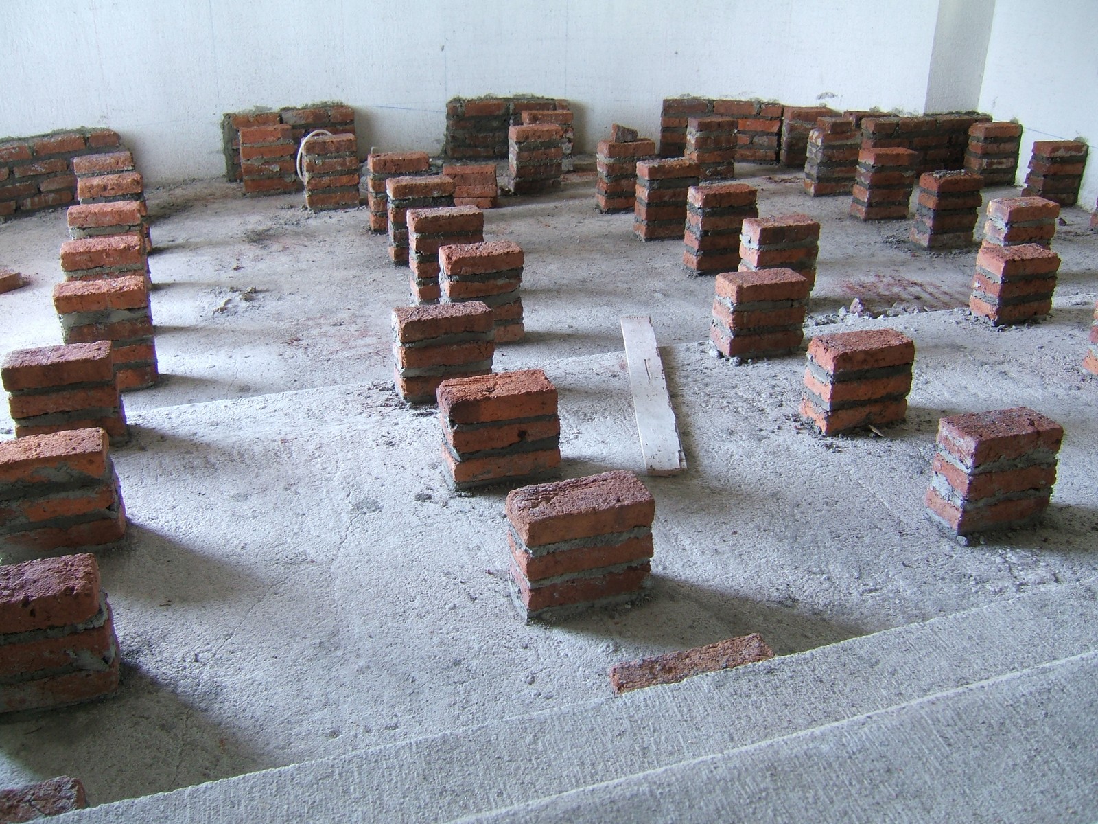 Se han puesto estos montones de tabiques en la estancia para soportar el piso de madera. Acceso abajo del piso es importante porque estarán cables y equipo de sonido y de video aquí.