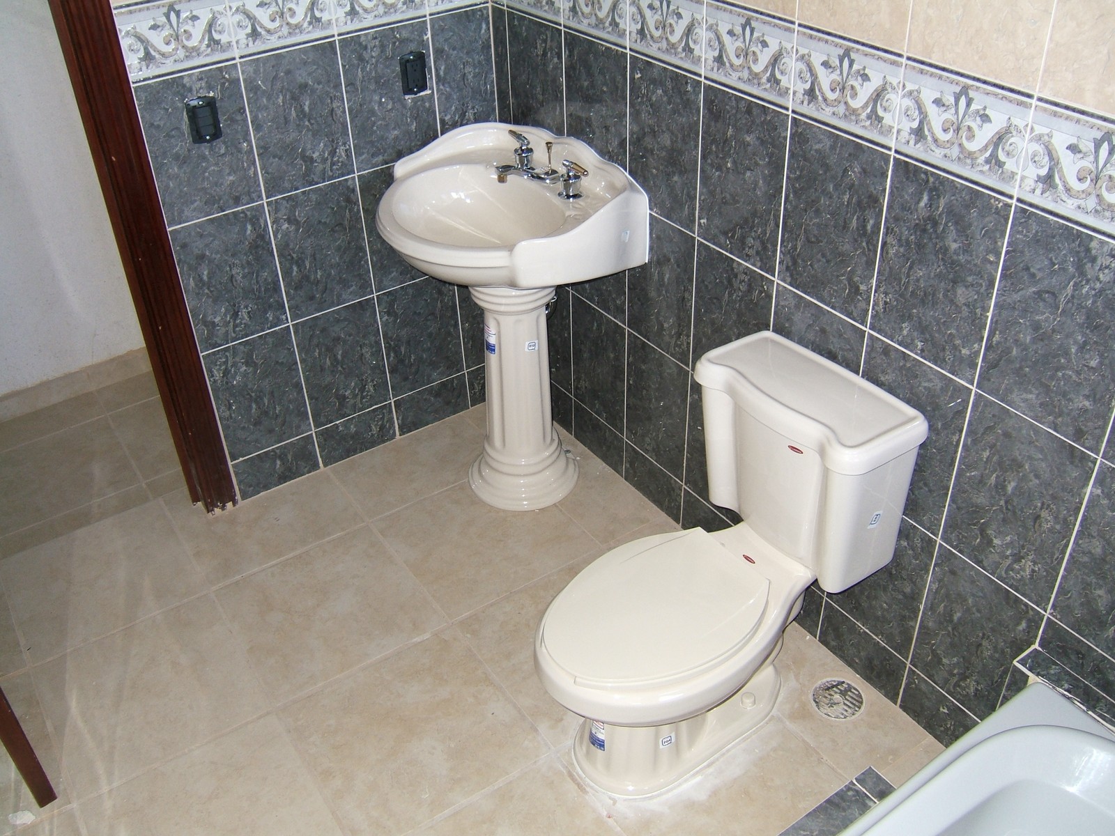 Azulejar en el baño compartido casi está terminado.