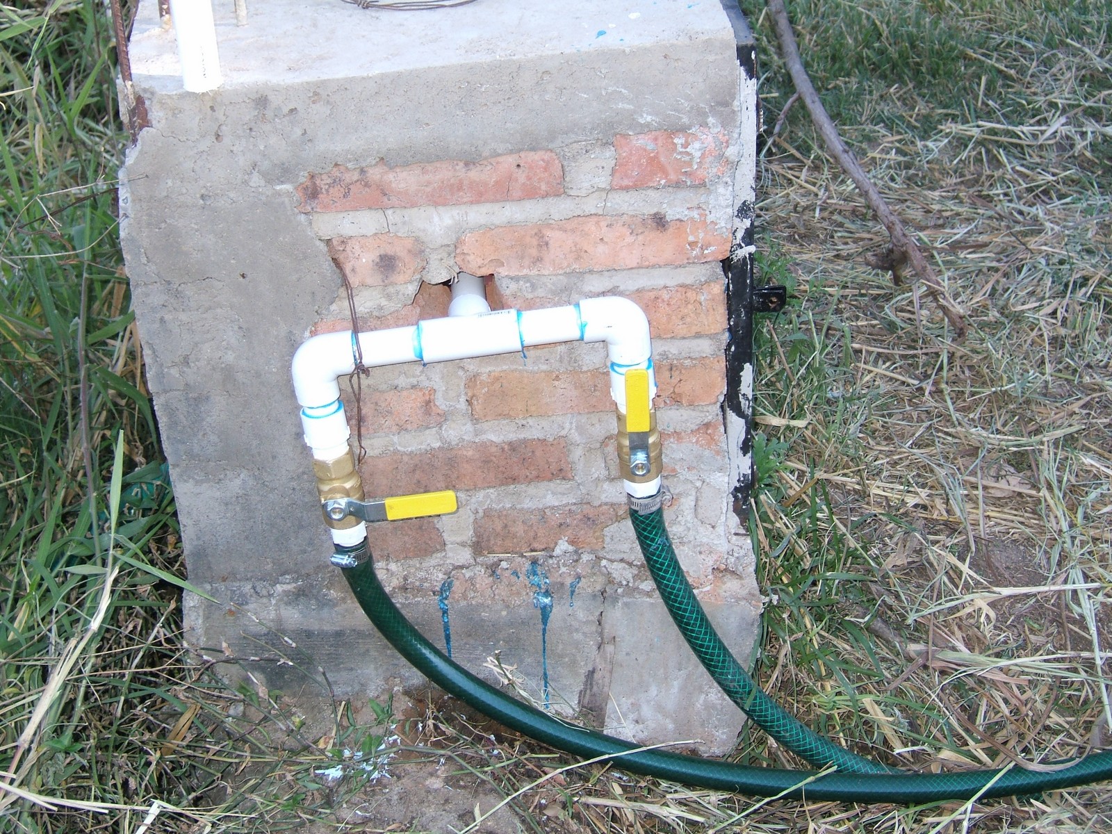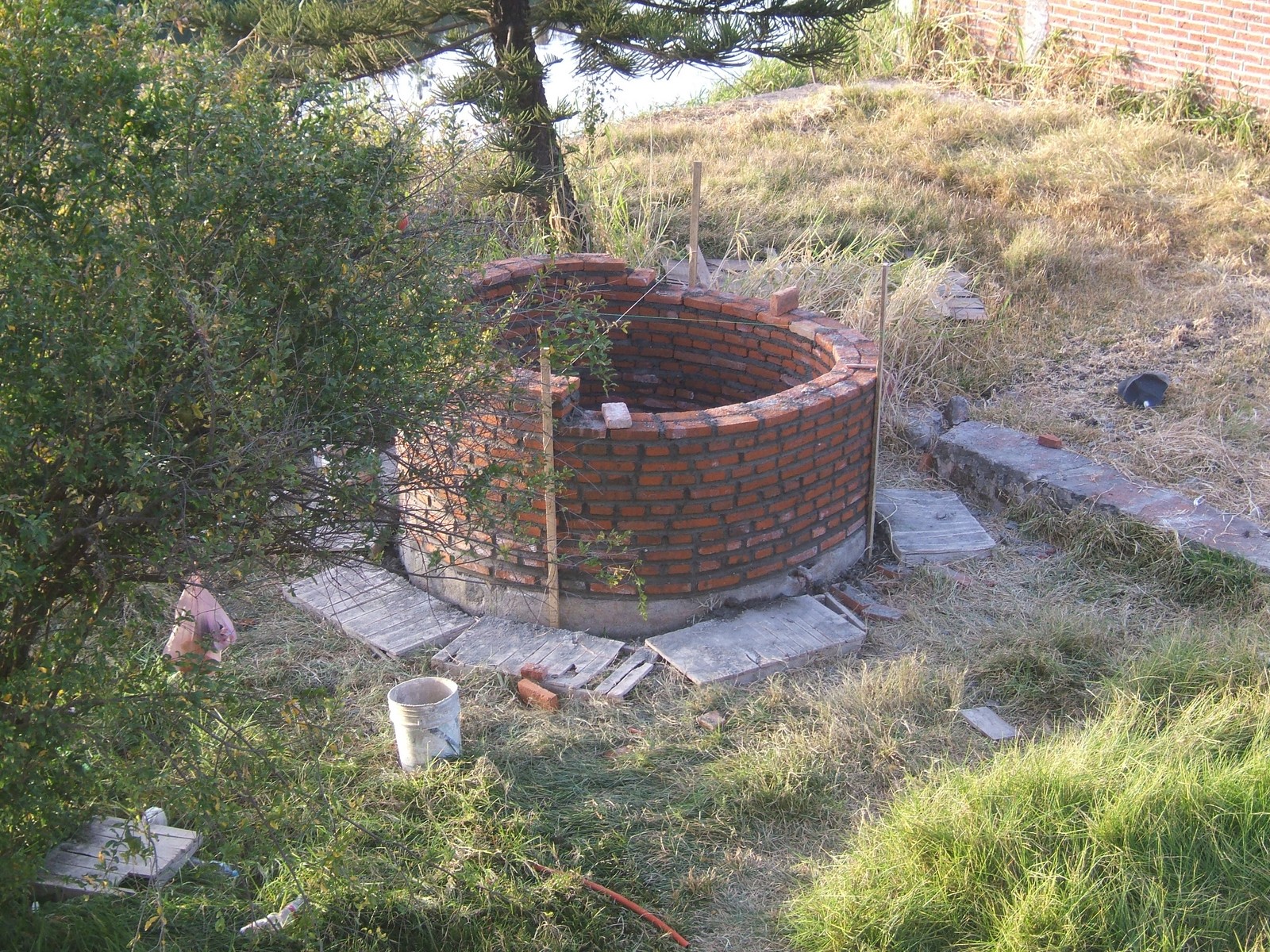 Una parte del recinto para el tanque hidroneumático. Hablando de agua, se ha cavado el pozo de 2 metros más de profundidad y ha bajado la bomba en consecuencia. Ahora el pozo recupera una profundidad de agua de acerca de 1.5 metros dentro de 24 horas después de que se vacía.