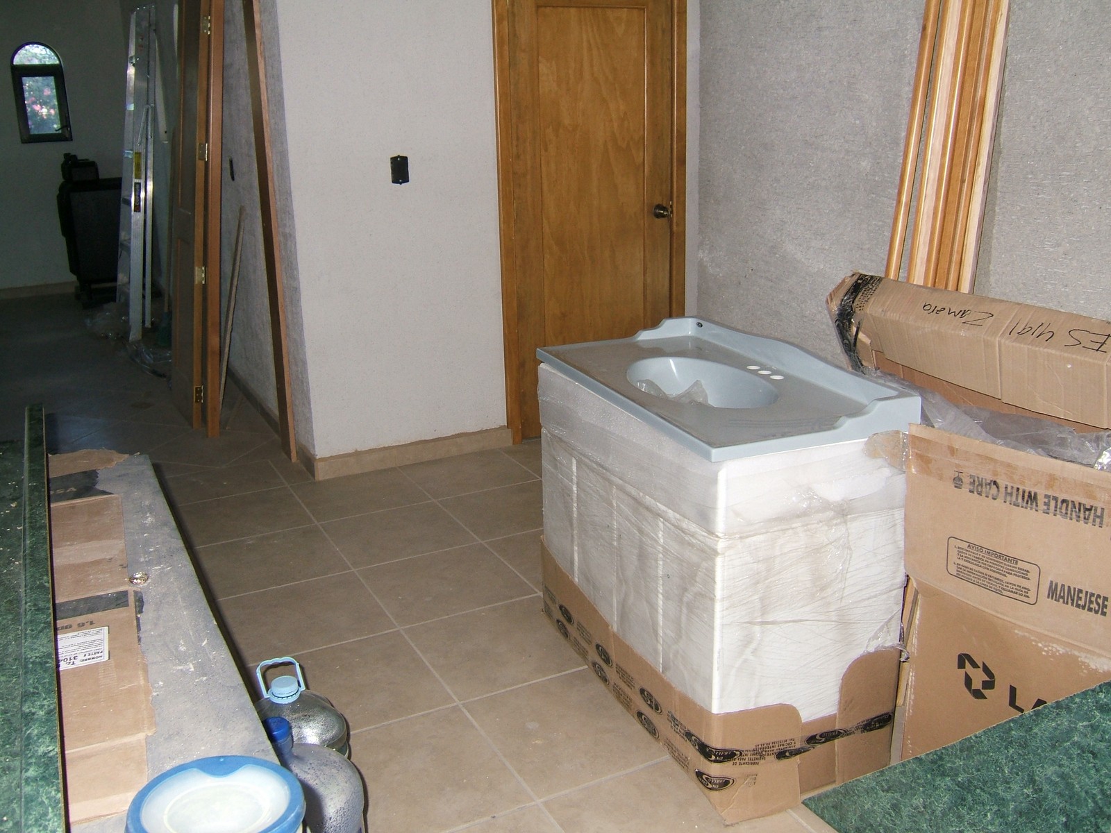 Al fin ha llegado el lavabo para la recámara principal. Ahora se debe de instalar, y también la llave/válvula para la tina.