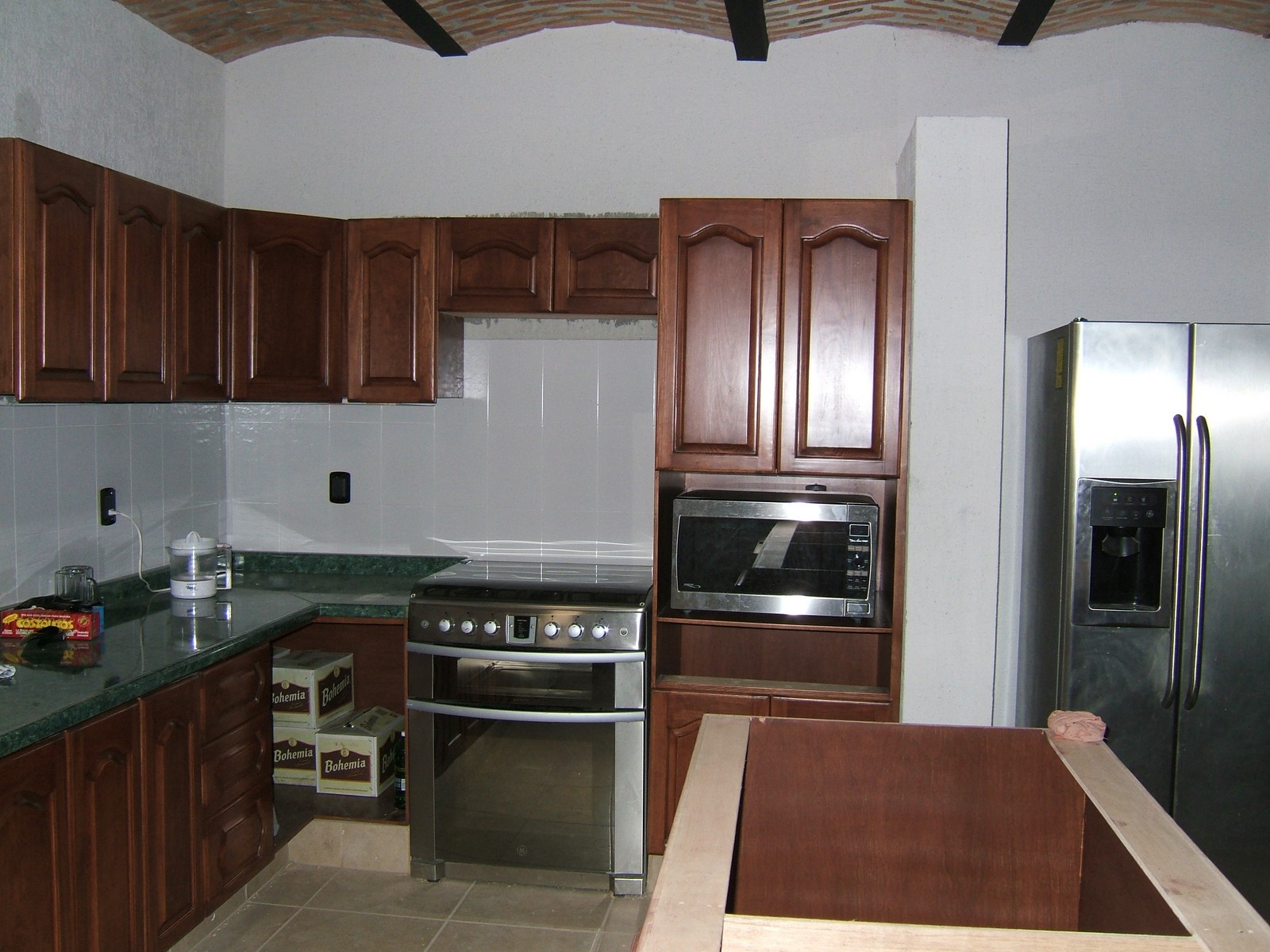 Con algunas de las unidades colocadas y aparatos llevados a sus sitios, parece más como una cocina. Se están comprando en Guadalajara un lavavajillas y una campana para la estufa.