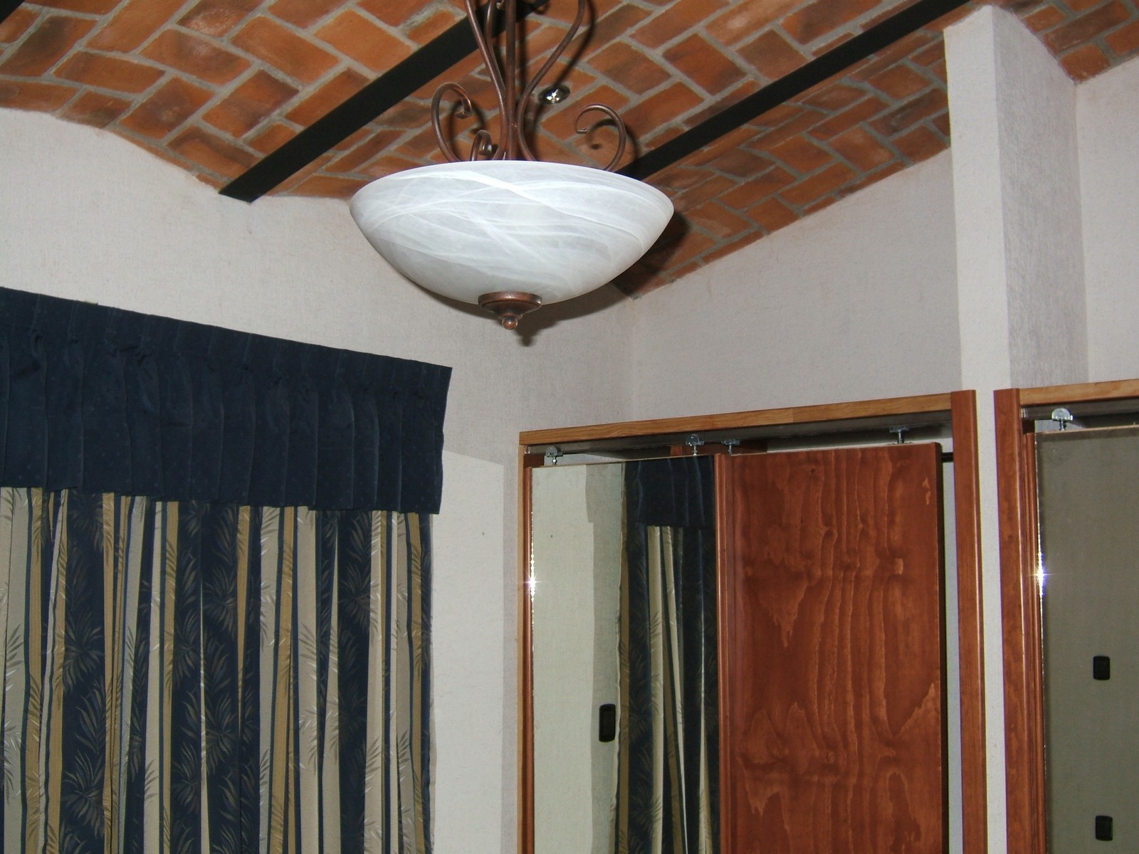 Recámara 3, mostrando la última de las lámparas por colocar. También hay las nuevas cortinas y los armarios (que no están terminados aún).