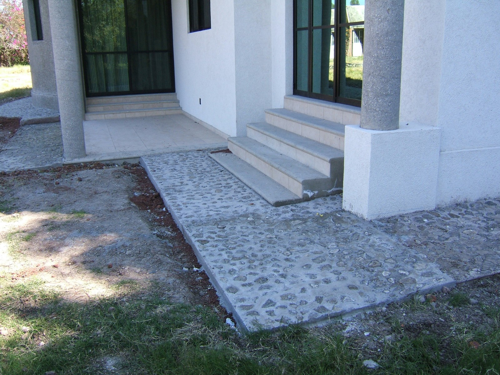 Con relación a repavimentar del patio, se está construyendo un camino acerca de la casa; este dará beneficios cosméticos y funcionales, y también protegerá la casa contra la humedad.