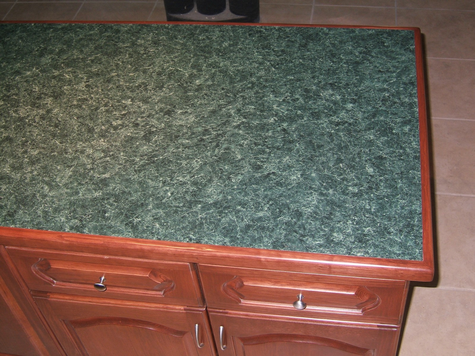 El problema de la Formaica se solucionó en una manera atractiva por hacer un borde curvo de madera. La sola carpintería por hacer ahora es colocar los carruseles y unos pequeños detalles. Pero lamentablemente debemos esperar otra semana más por los muebles y los aparatos.