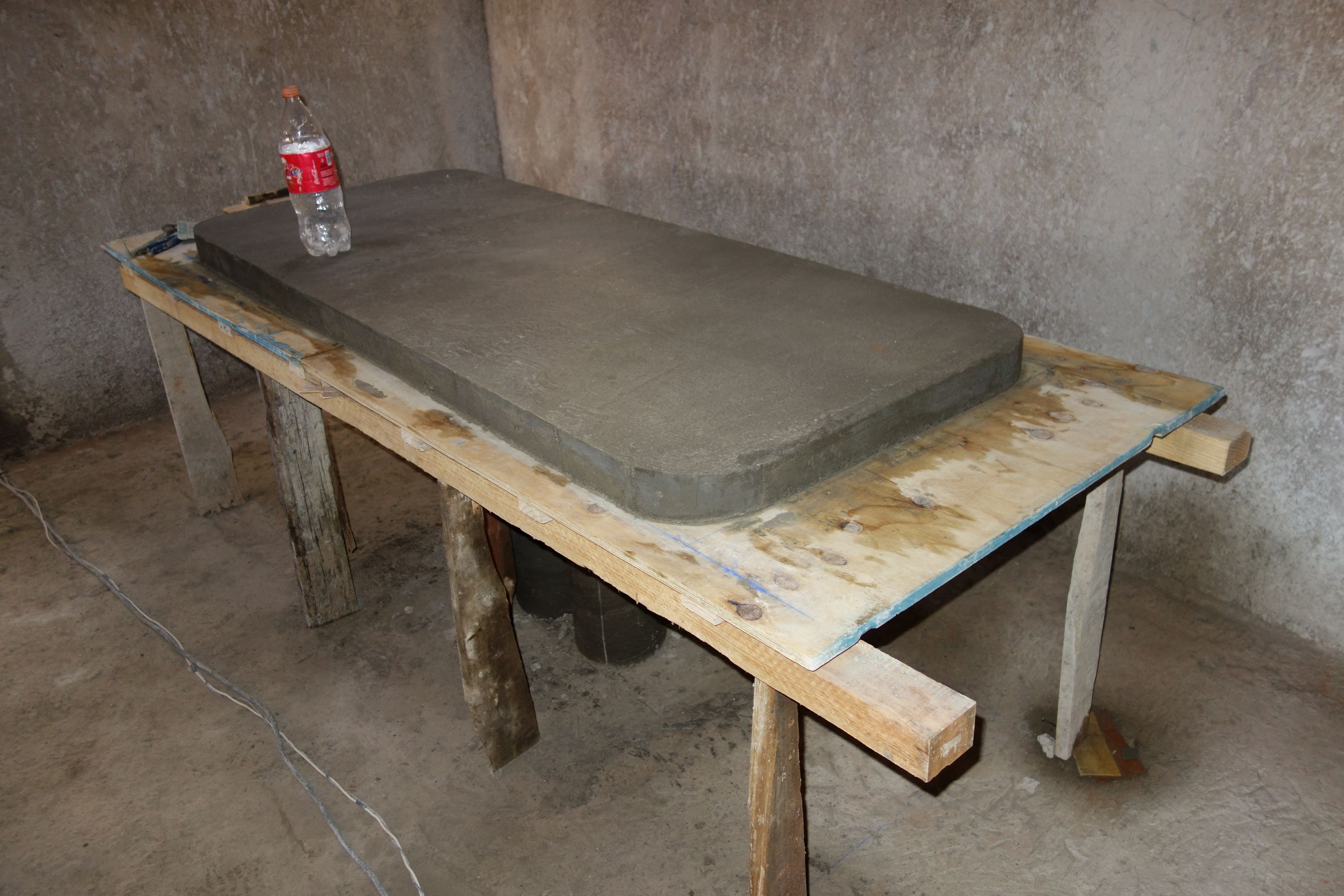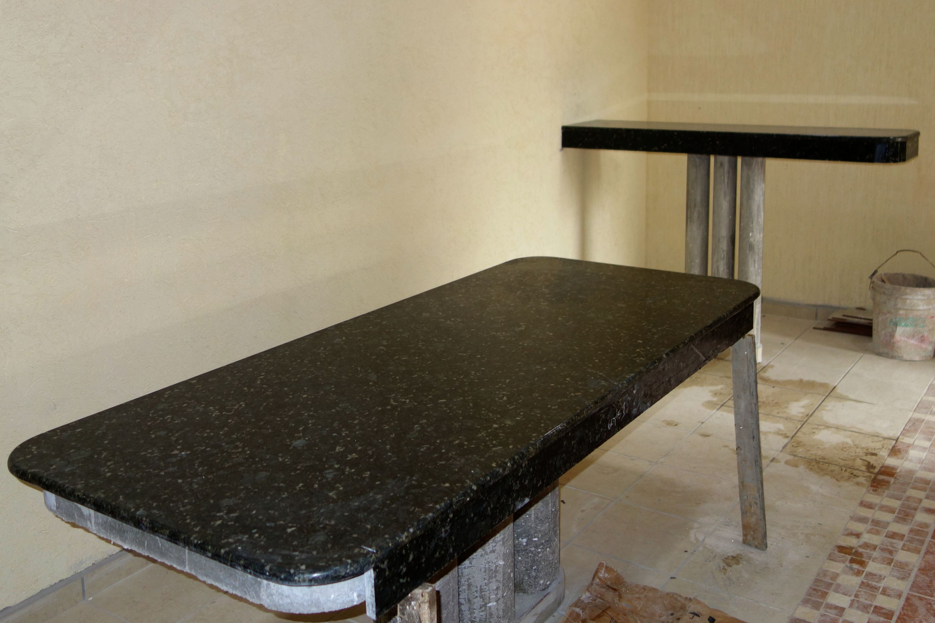 The obra negra of the dining and bar tables has now been done, ready to receive the granite. They are still on wooden supports while the concrete hardens. |
