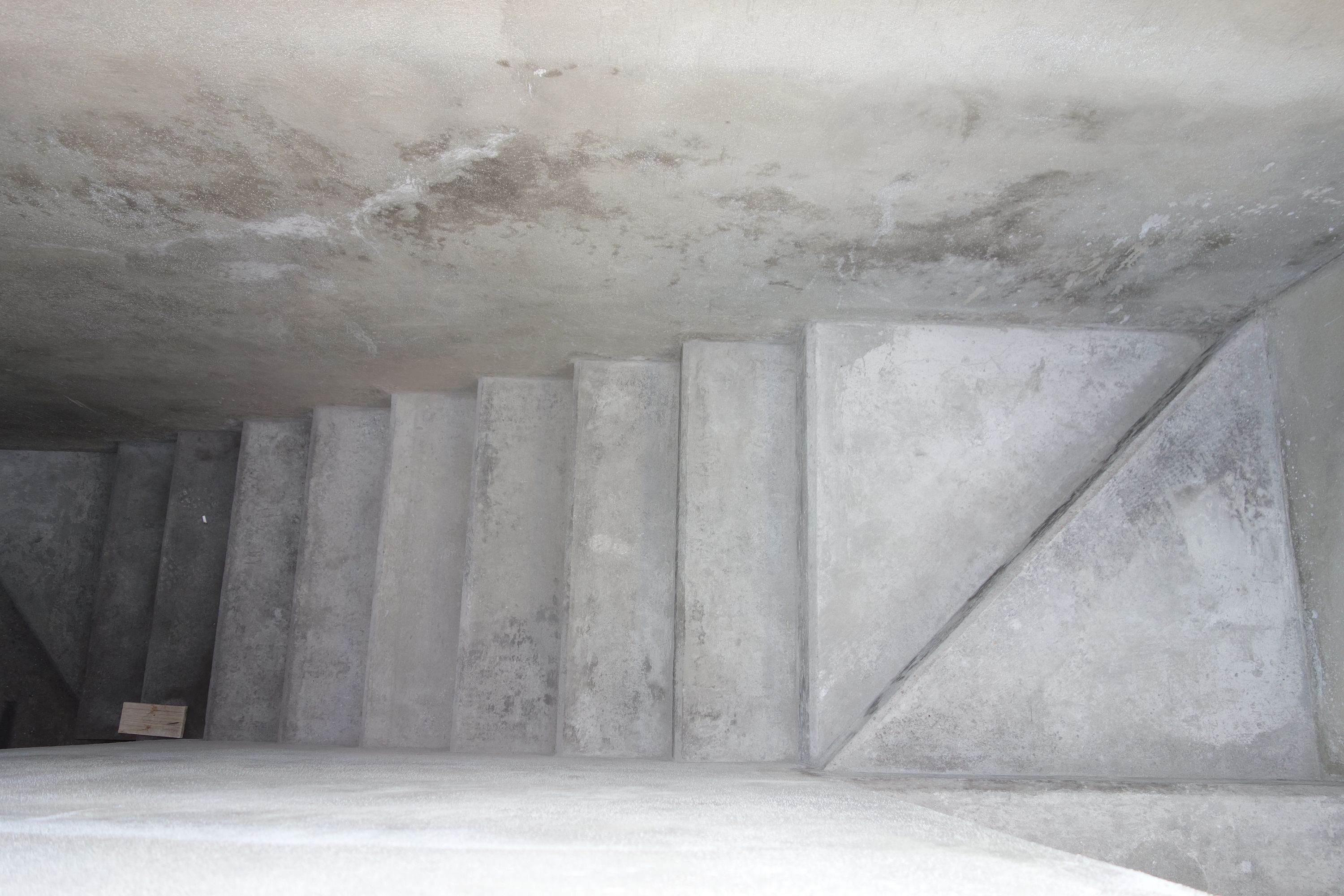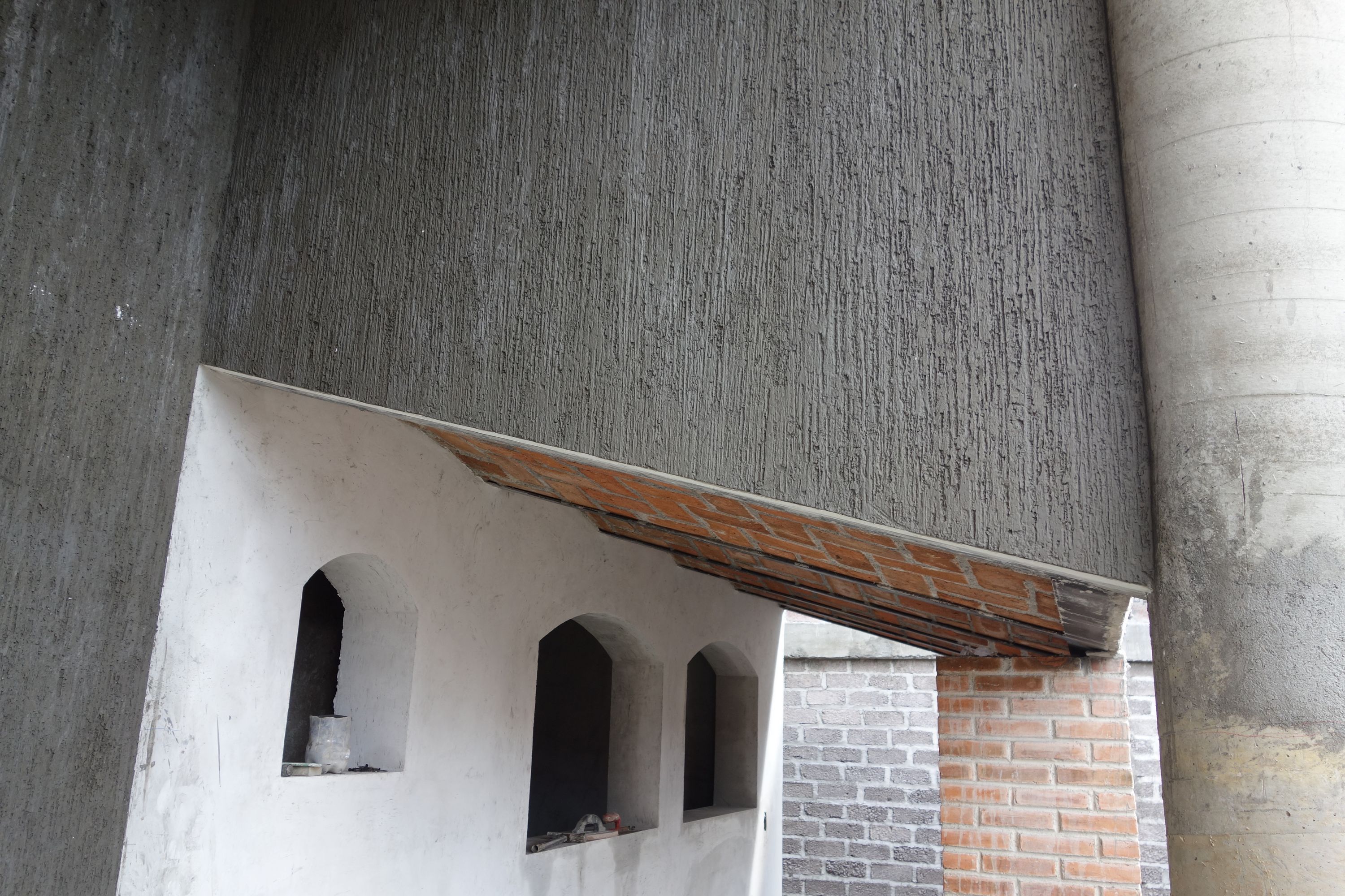 - Textured concrete is applied to the front of the house, bóveda is finished off in the living room, and preparations are made for fitting the skylights.