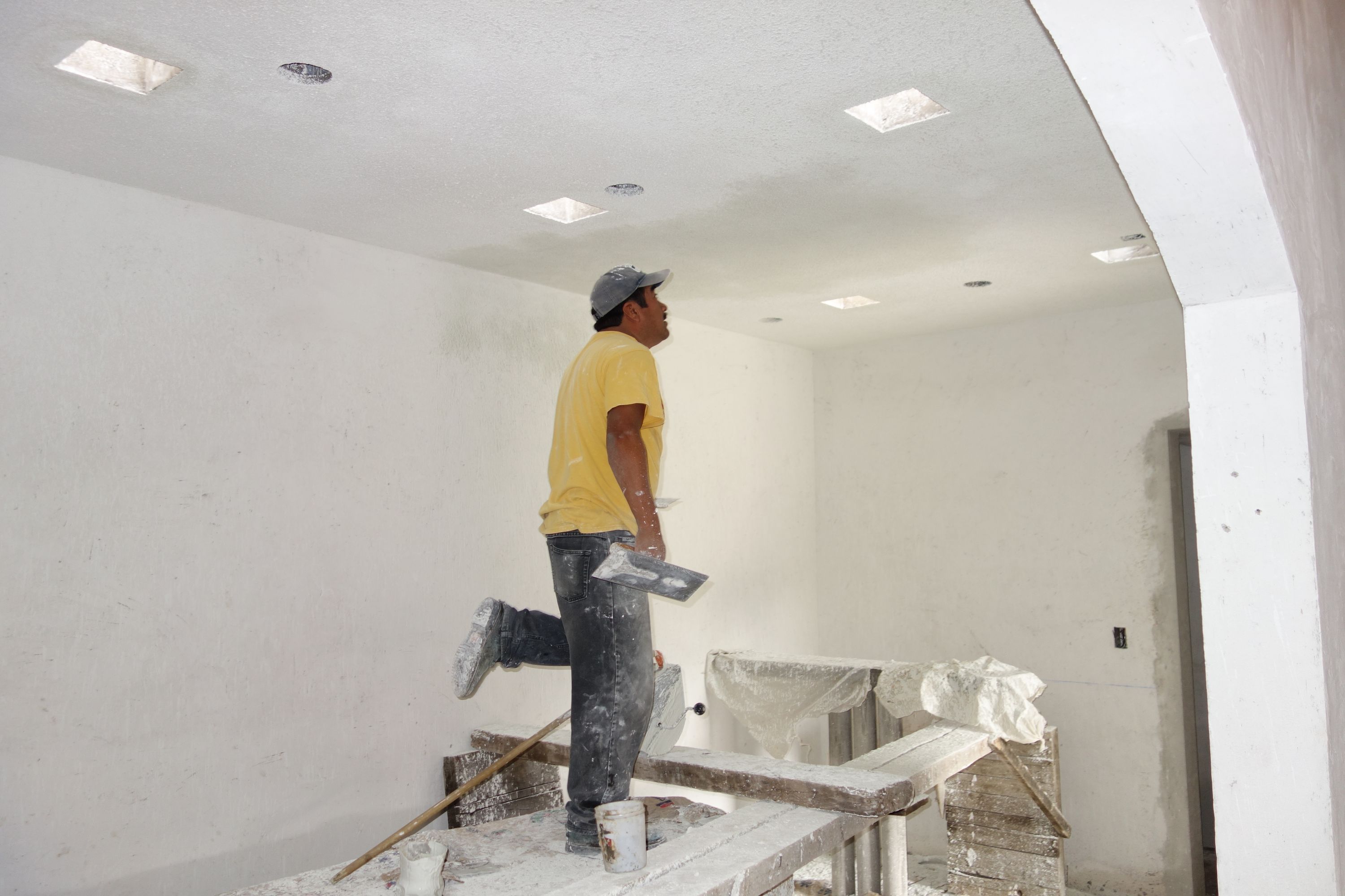The study is now receiving a primer (with vinyl sealant) ready for applying the texture and paint. |