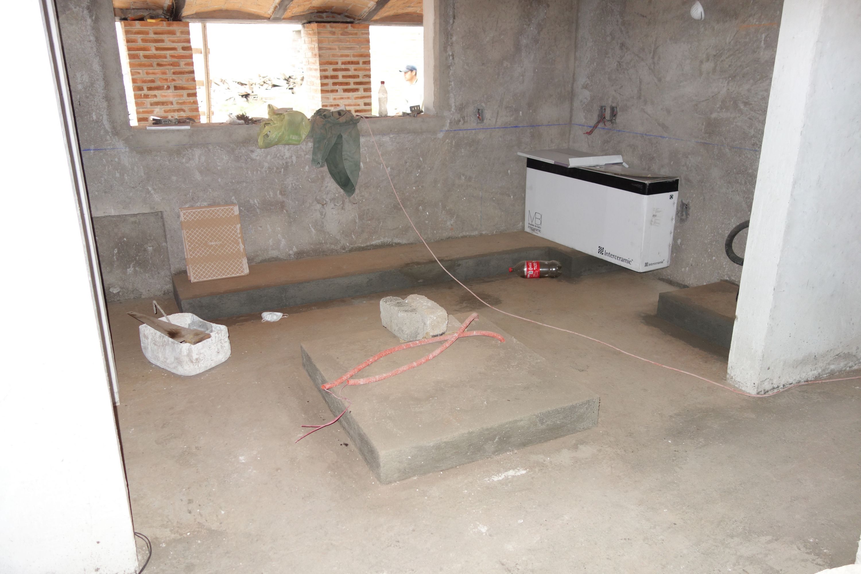 The subfloor (final layer of firme) is now being poured in the living room, ready to receive the floor tile. As can be seen, this is 3-4 centimeters thick, on top of the first layer of around 8 centimeters. |