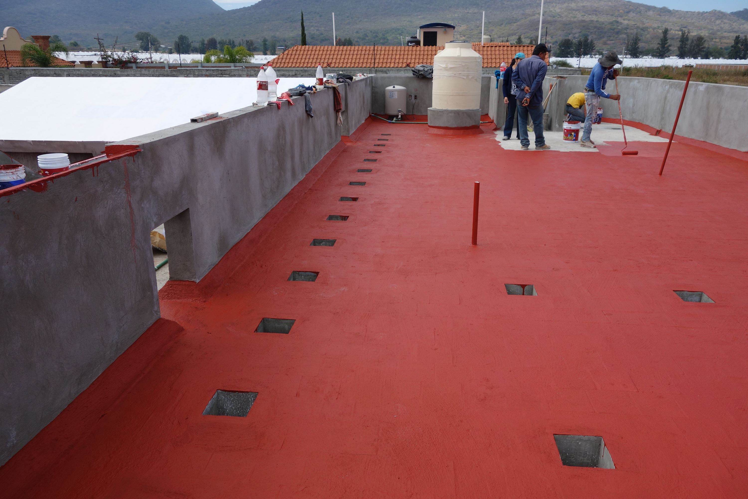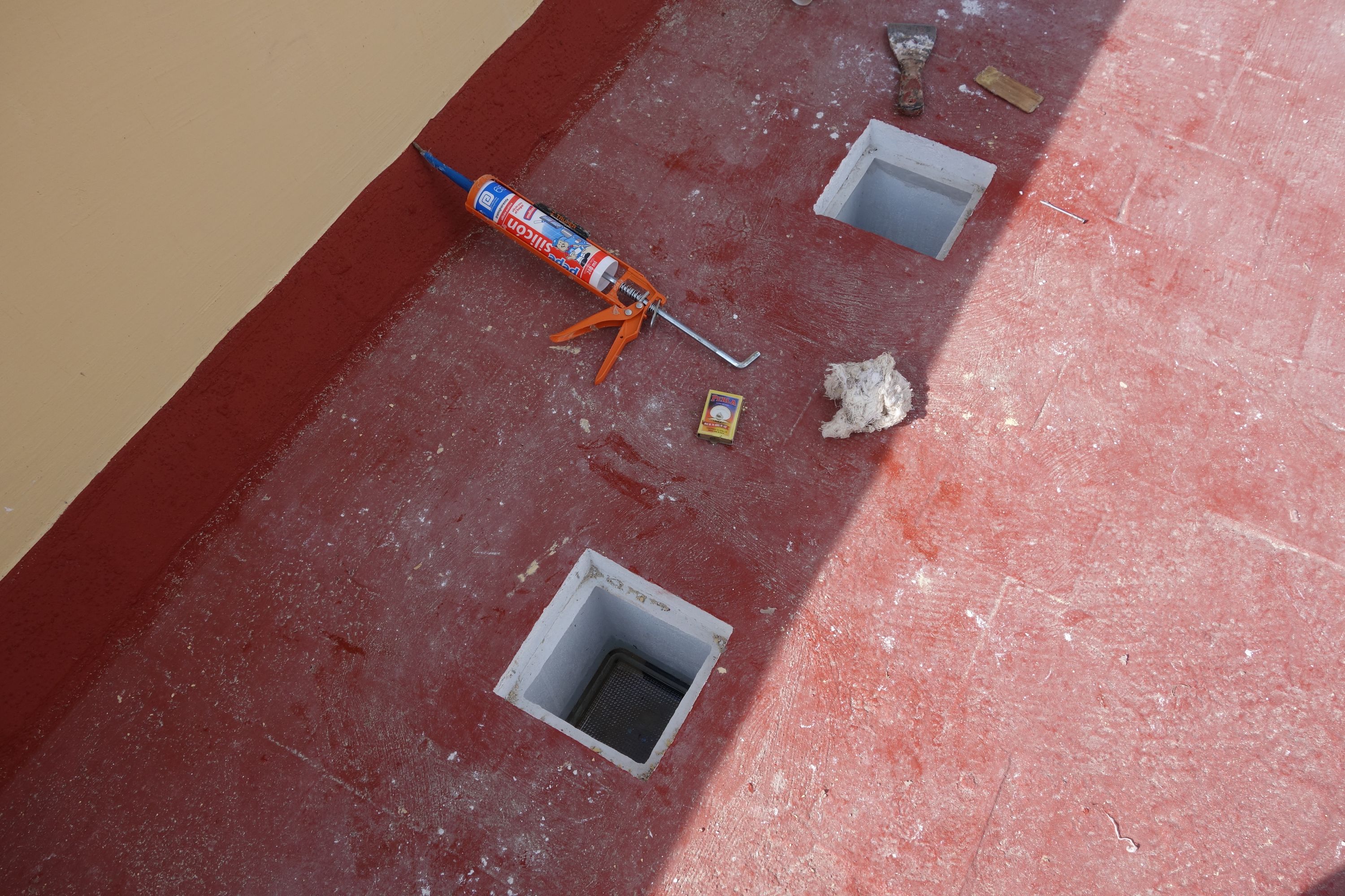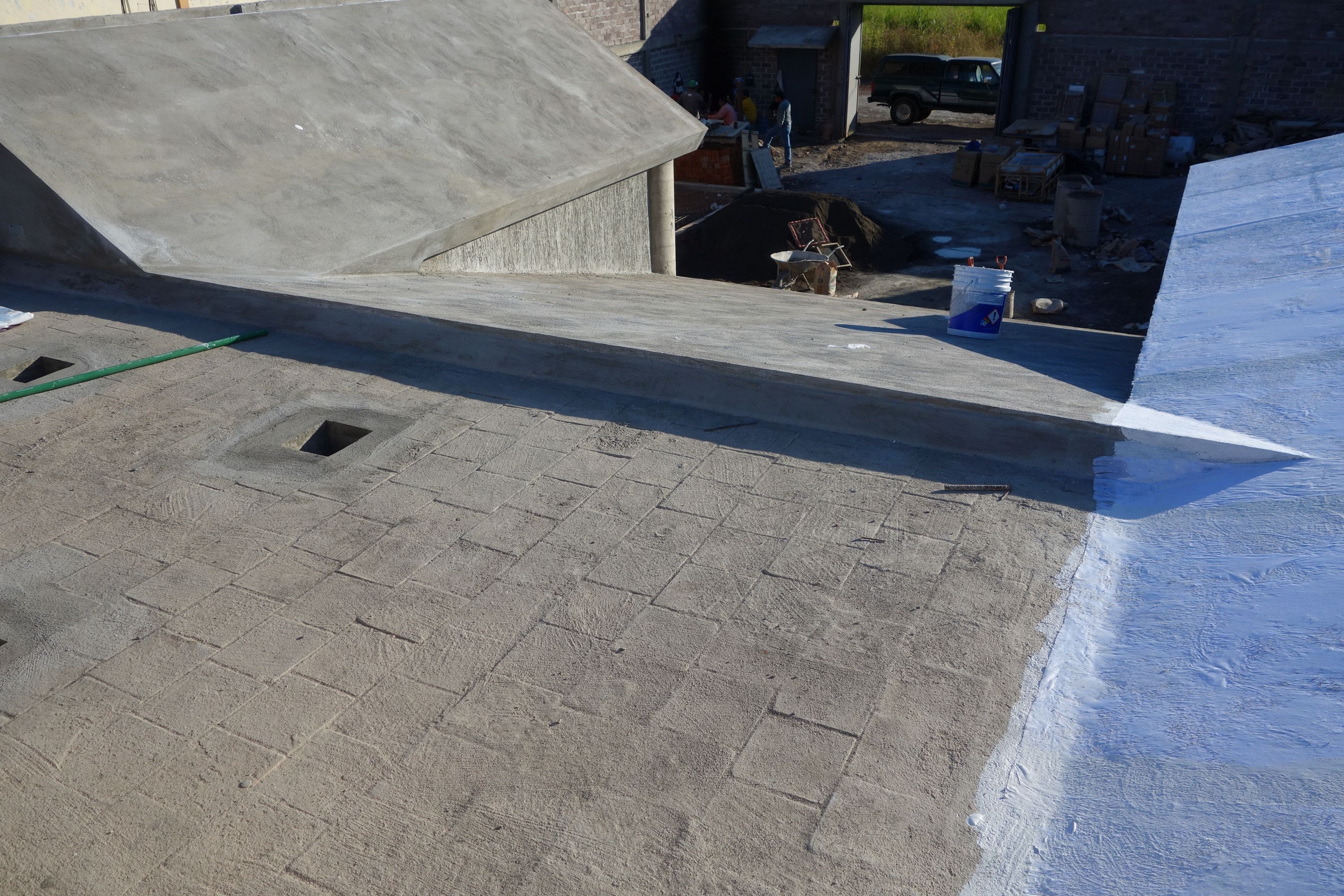 Impermeabilizante is now being applied to the flat parts of the roofs. The skylights still have not been fitted, but I suspect that Rubén has quite deliberately left this for at least two good reasons: