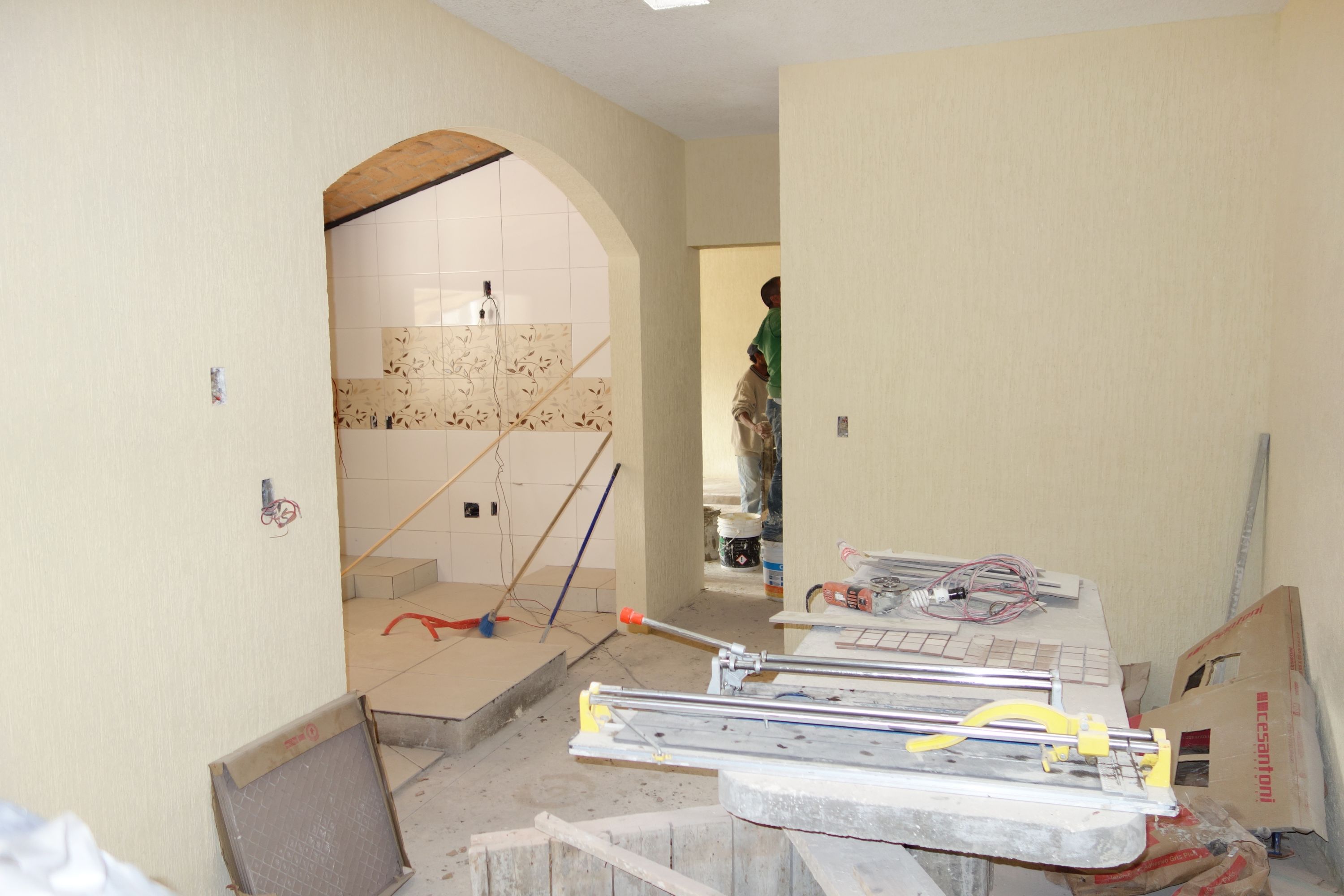 Texturing inside the house is now complete, leaving only external areas. Tiling inside the house is also done, except in the bathrooms. |