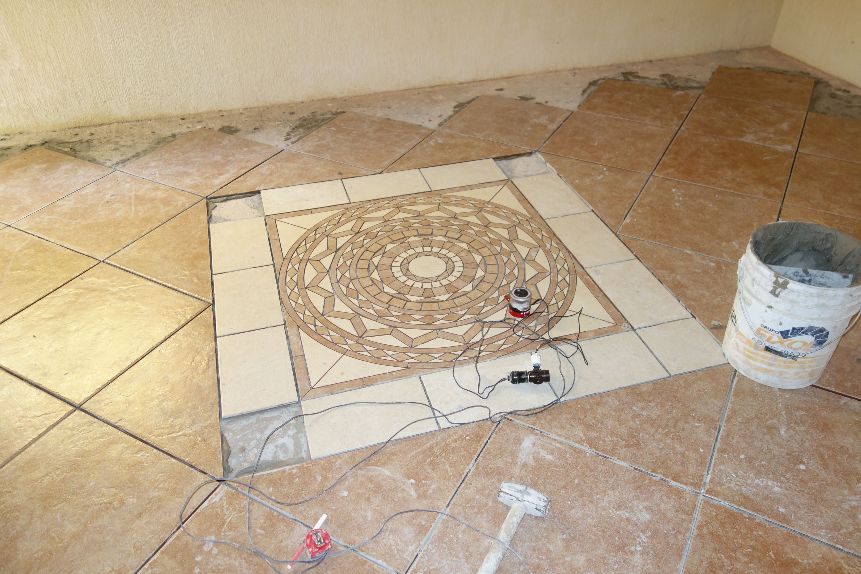 I splashed out on a mosaic for the sitting room. Unfortunately, there is not quite enough of the tile to complete the border (since they put zoclo around the dining table and bar) so we had to buy another box. |