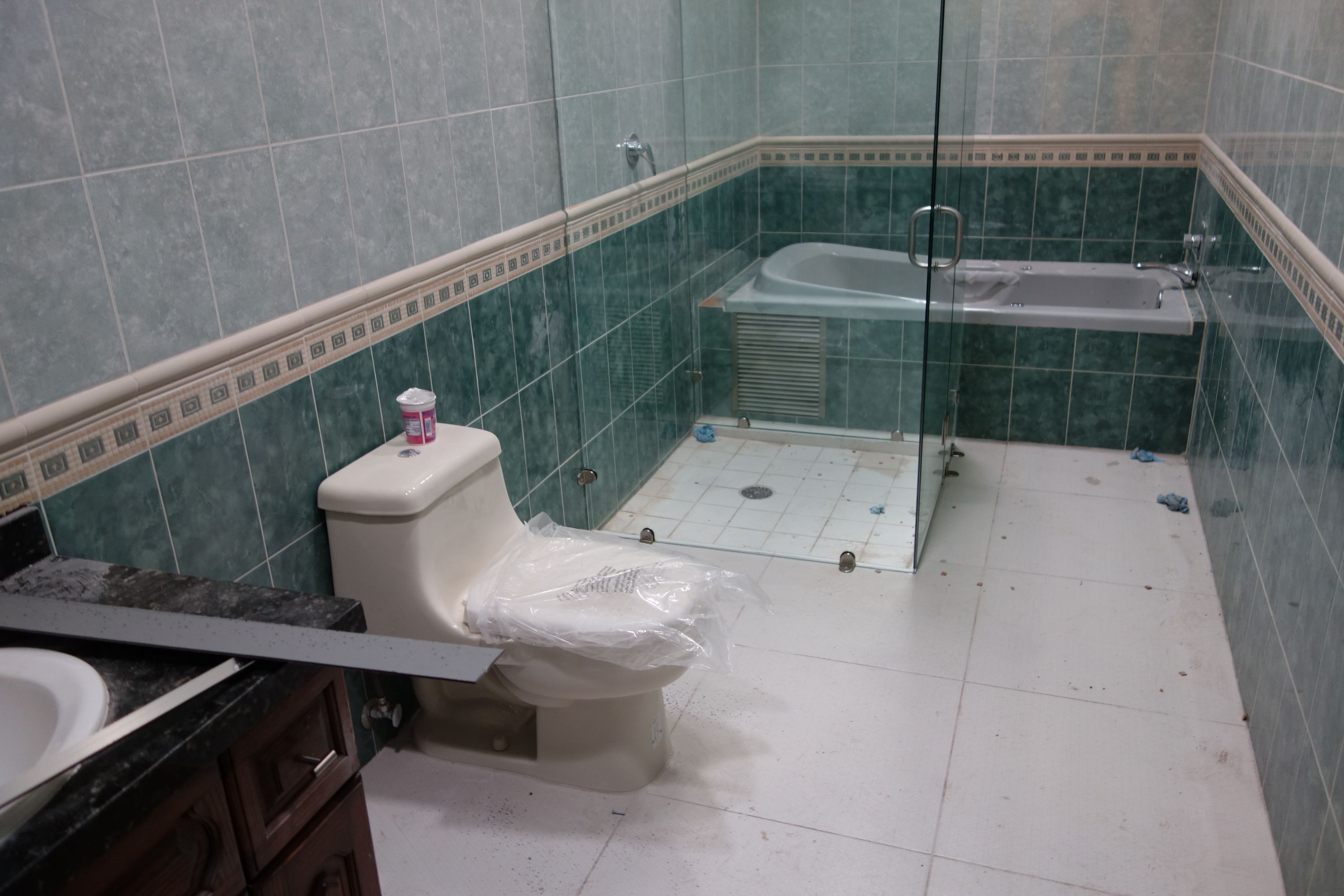 The shower cubicles have been completed in both bathrooms; we are a little concerned here in the shared bathroom that it is rather too close to the bathtub. The wall-mounted cabinets are still under construction and do not appear too promising. We reported our concerns to the manager and he says we should wait until they are finished and see if the end result is satisfactory. Let's hope... |