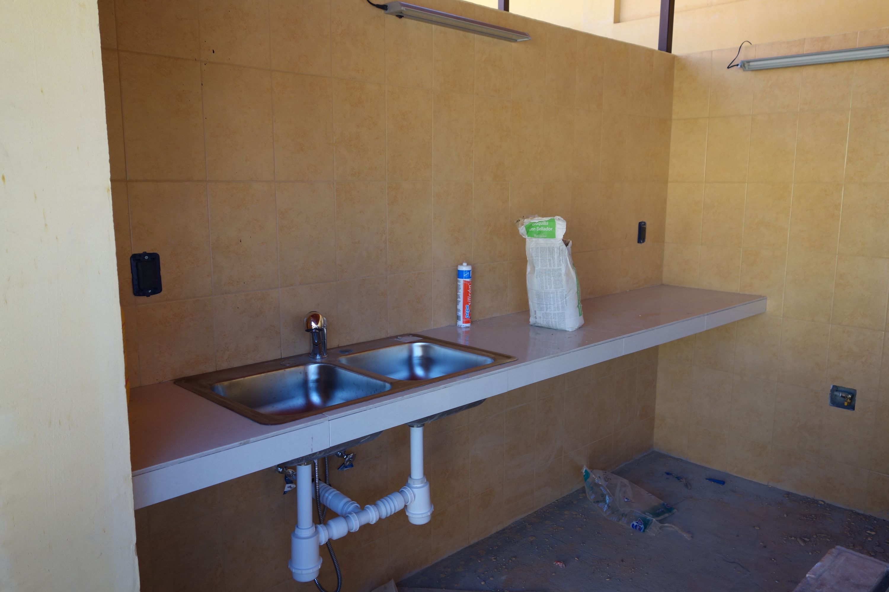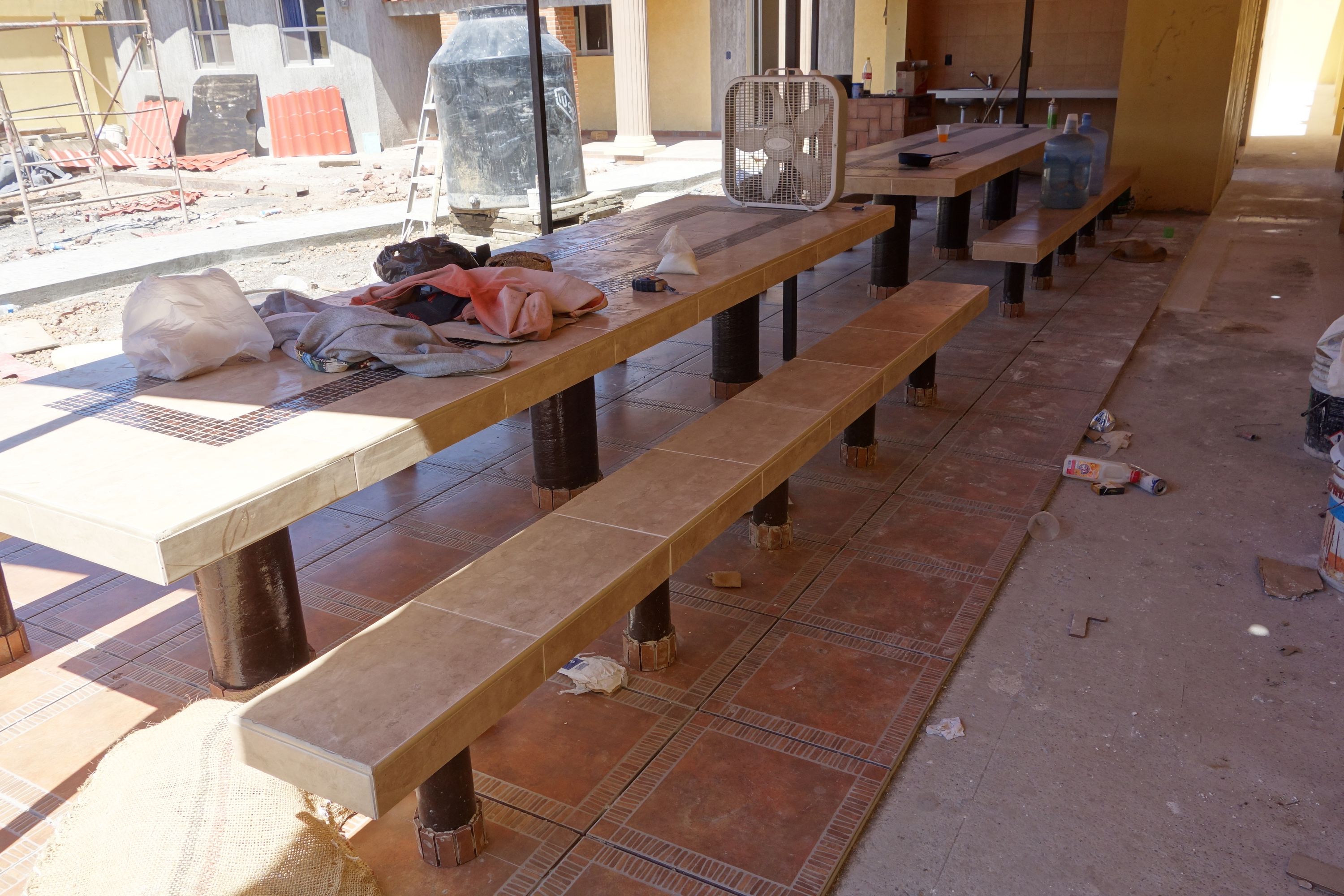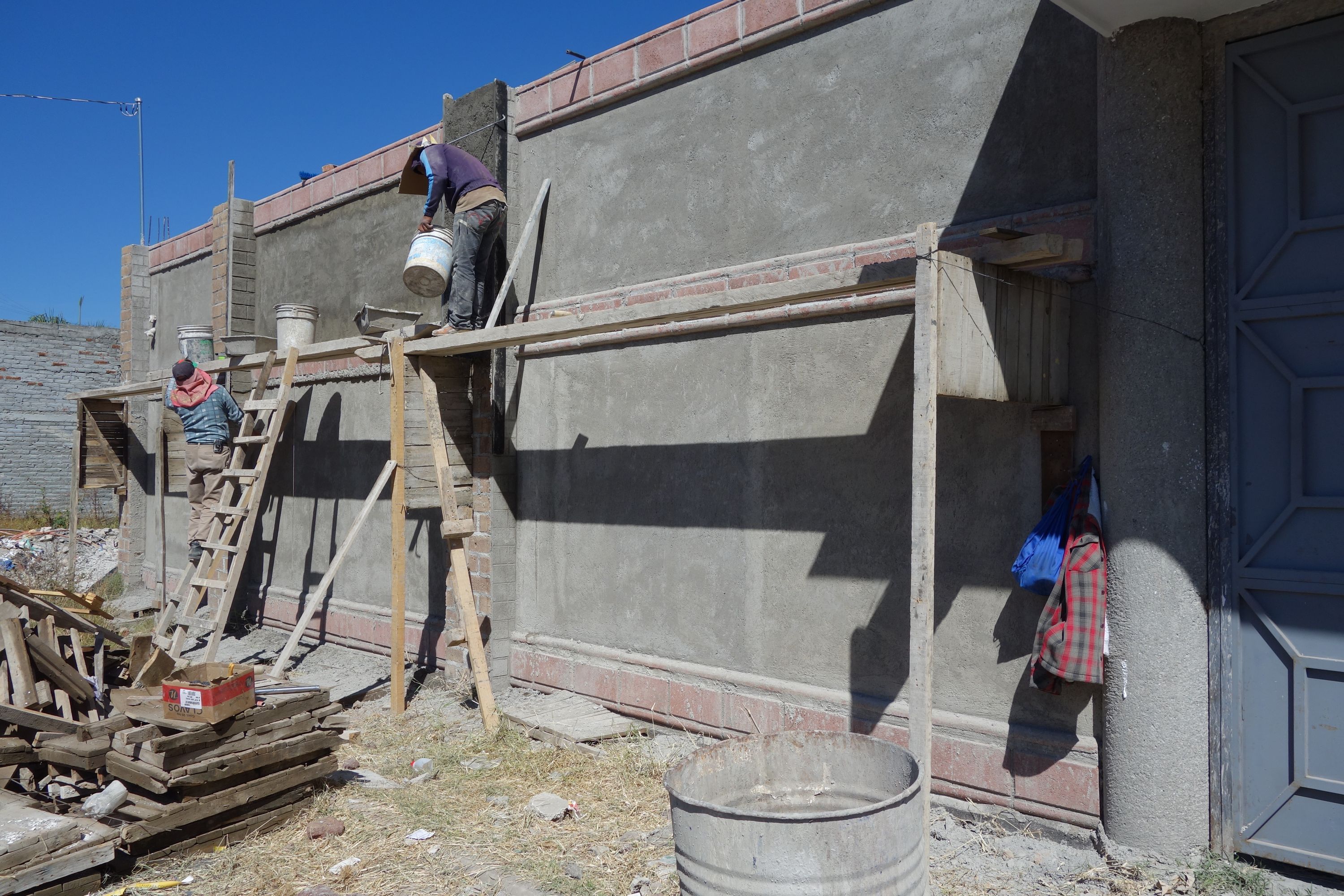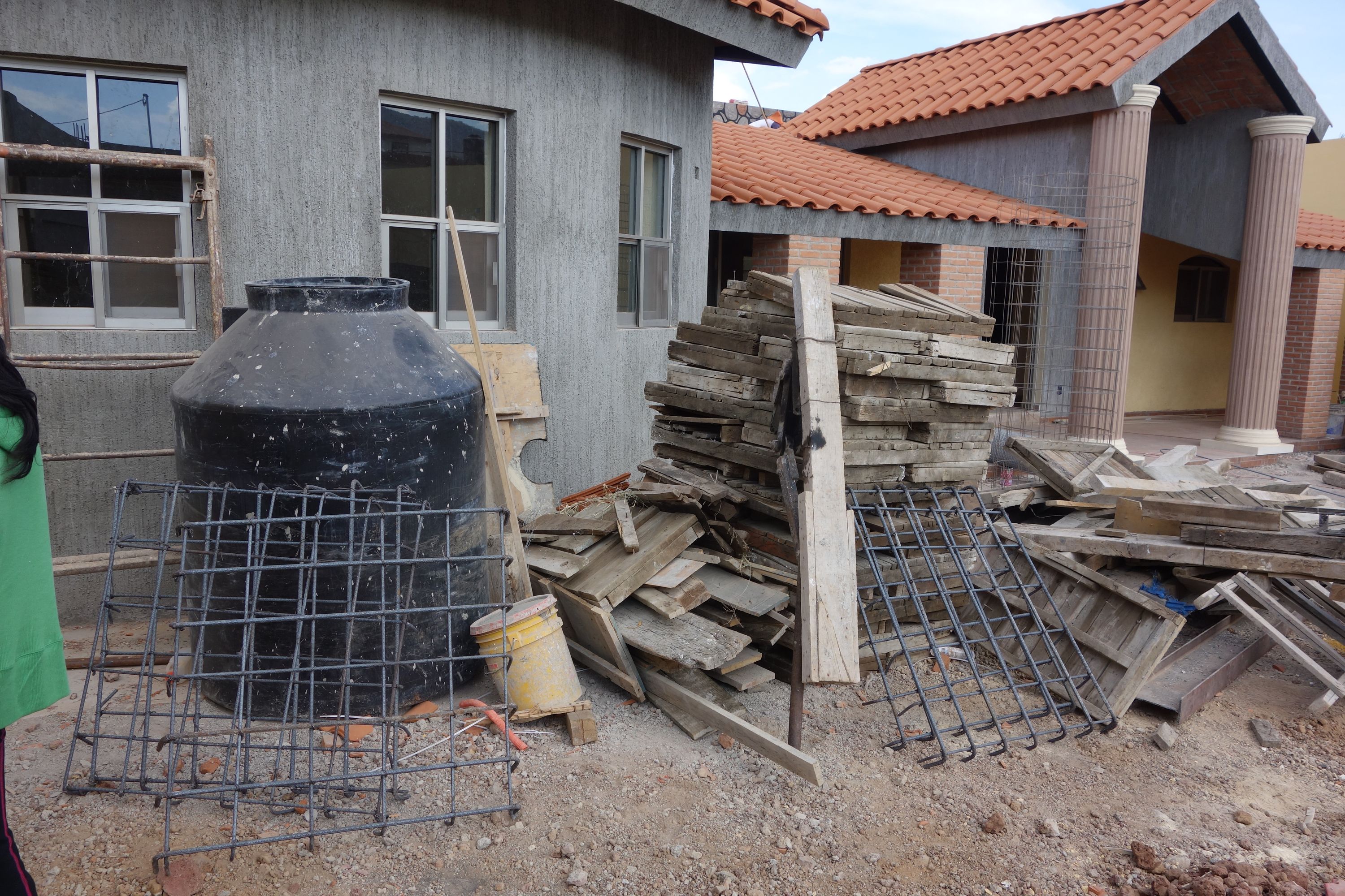 - The main work is on the boundary wall, especially the fachada, which is being reinforced both inside and outside prior to providing an elegant finish. In this and other areas, inadequate plantillas from "maestro" X are being replaced. We also organized the steel roofing for the entertainment area. Inside, ceiling fans and shower cubicles have been fitted.