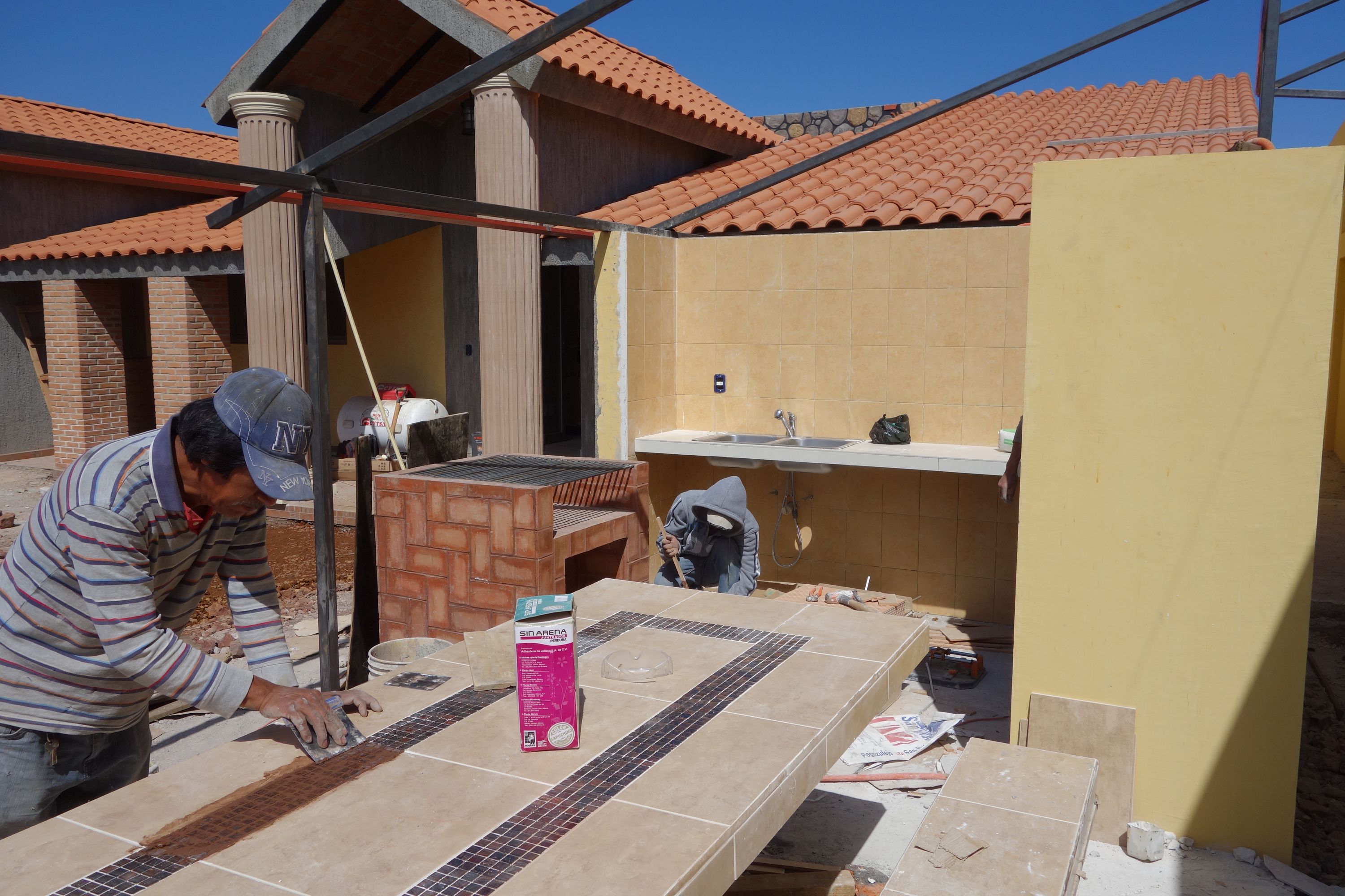 - The banqueta is being made, and tiling done on in the entertainment area. The carpenters have delivered the five doors for the rear of the house. The aljibe has been prepared for painting its interior. At last we have acceptable medicine chests, so the aluminum work is done.