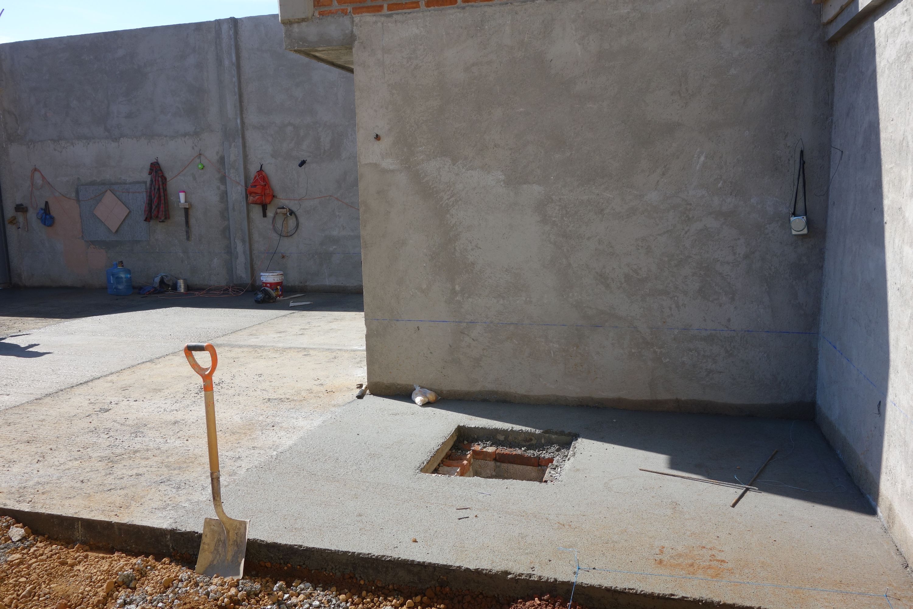 They made another registro here to make the connection from the sewage outlet pipe to the septic tank. Care needs to be taken to ensure water drains from this area toward the portón (the only place where water can exit the property). |
