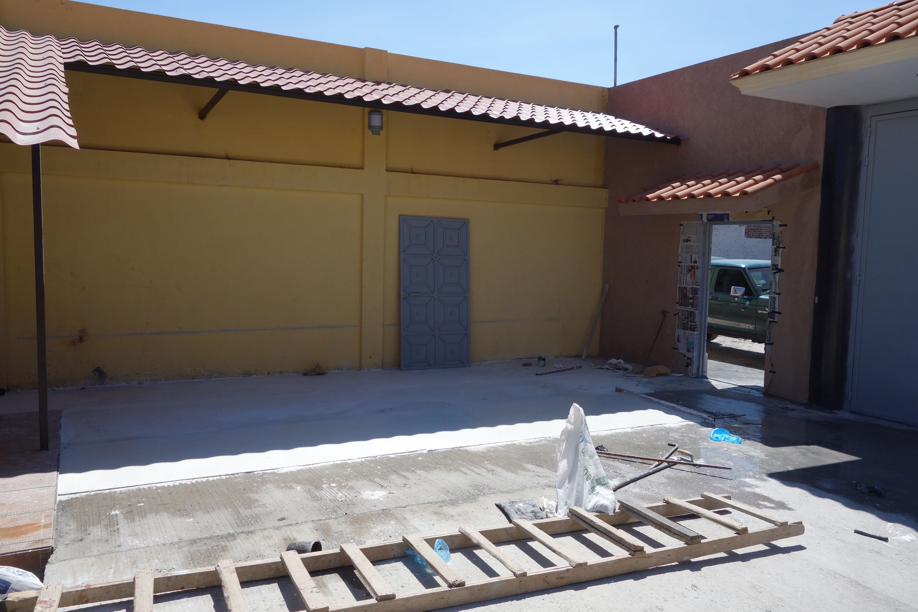 The fachada is now shaping up nicely, and some tiles have been placed on the small marquesina (we will need to buy more tiles to finish). Jaime has installed the lighting under the large marquesina. The excavated area is being filled in with filtro and compressed with an extremely noisy bailarina. Also, aplanado has been done on the inside of the storage room. |